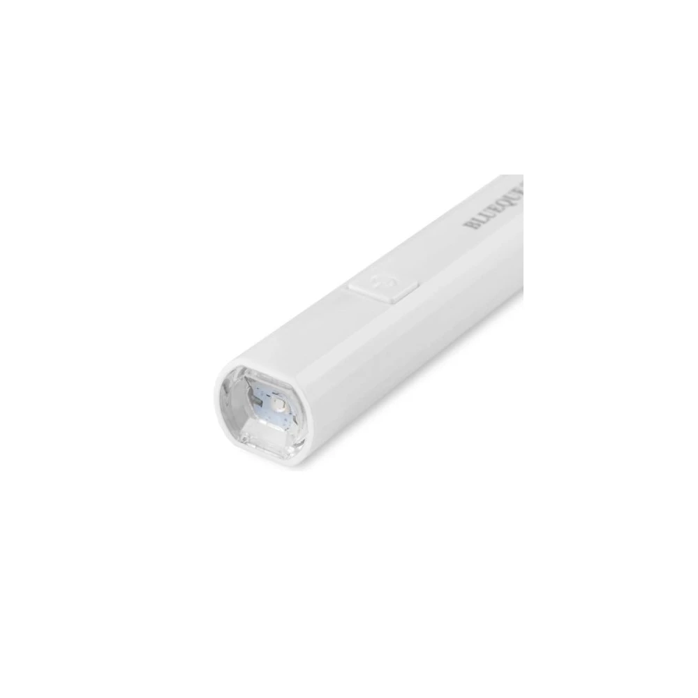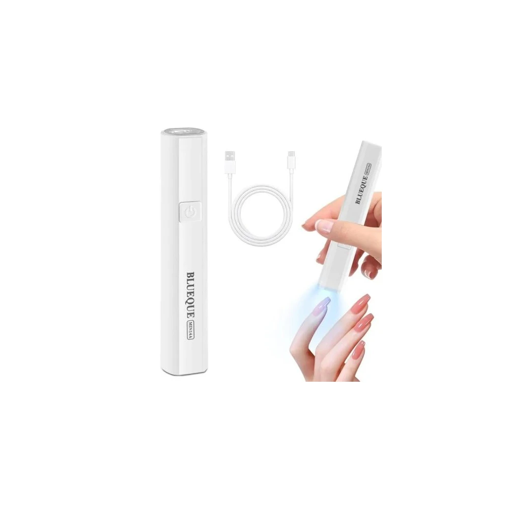 This Blueque BQ-MINI4A is ideal for drying all kinds of nail art that classic lamps have trouble with, such as nail tips, nail polish, gel nails, base gels, gel gels, acrylic gels, etc., but also finds many other different uses, such as spot irradiation. The lamp is made of durable and light plastic. Dirt can be cleaned with a damp cloth and disinfectants. The device has a minimalist design: an elongated body and 1 on/off button in the middle. There is an LED on the top and a USB Type-C connector on the bottom for charging. It has a 5x magnification convex lens and 3W power, so it effectively dries different nail decorations. Thanks to a built-in battery, you can work anywhere without having to worry about unnecessary cables. The nail lamp can operate continuously for approximately 60 minutes when fully charged. During use, point the lamp only at the surface to be dried.