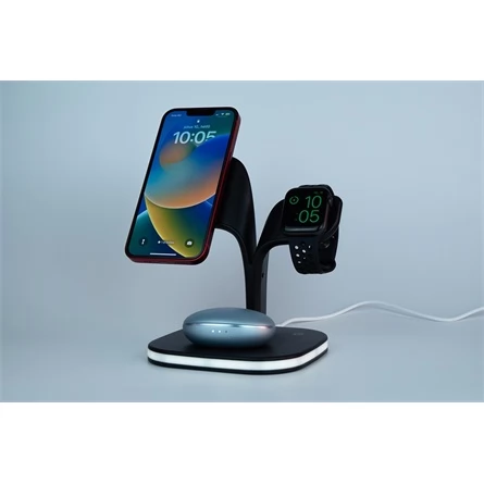 Get rid of the hassle of cables with the Boost 5 in 1 Wireless MagSafe Charging Station, which is compatible with all phones from the Apple iPhone 12 to the 14 model, and you can also comfortably charge your Apple Airpods and Apple Watch.