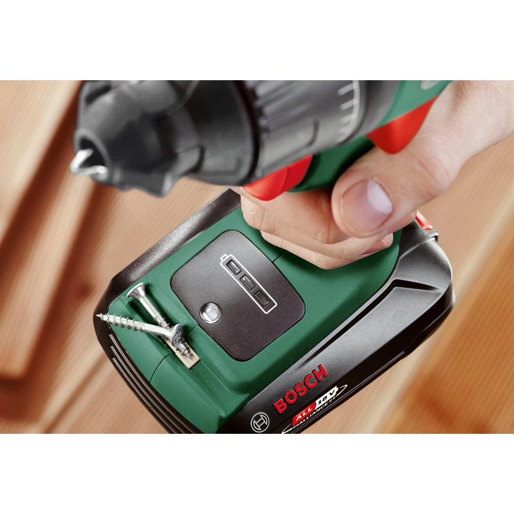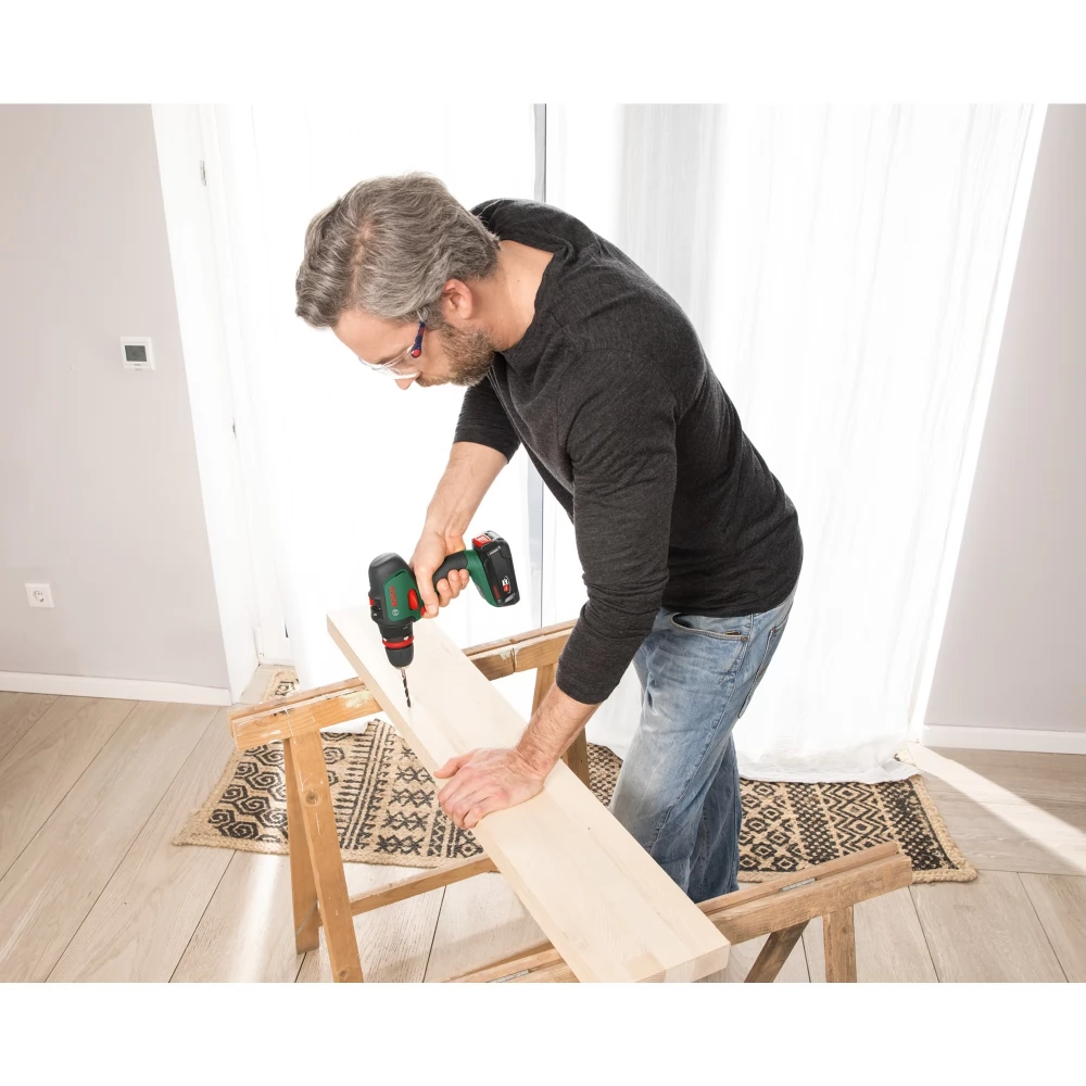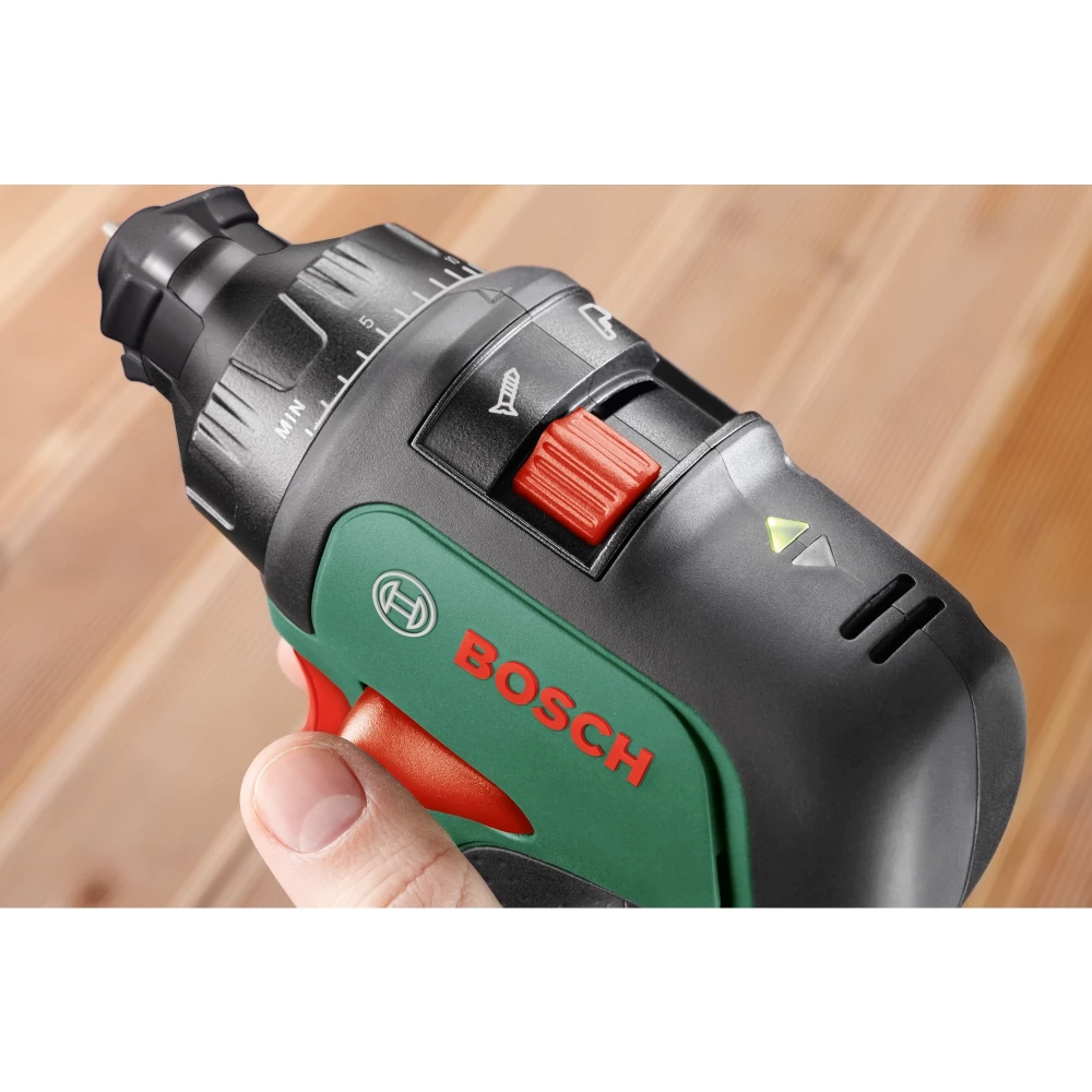 With the Bosch AdvancedDrill 18 cordless drill and driver, you get a powerful and compact cordless screwdriver for various drilling and screwdriving jobs. Thanks to its light weight of only 1 kg and the ergonomic handle, the cordless drill enables fatigue-free work.
