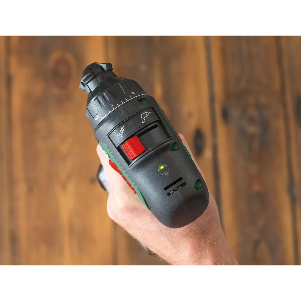 The Bosch drill-driver offers convenient use with its two levels. The idle speed of the first stage is 430 rpm, while the drill can reach 1350 rpm in the second stage. For soft materials such as wood, the torque is 24 Nm, while for harder materials such as steel, it is 36 Nm. You can change the direction of rotation with a single button press. An LED display provides information about the current direction. After restarting the device, due to a software algorithm, the usual, forward rotating direction is always in effect. Thanks to the LED display, incorrect settings are almost impossible.