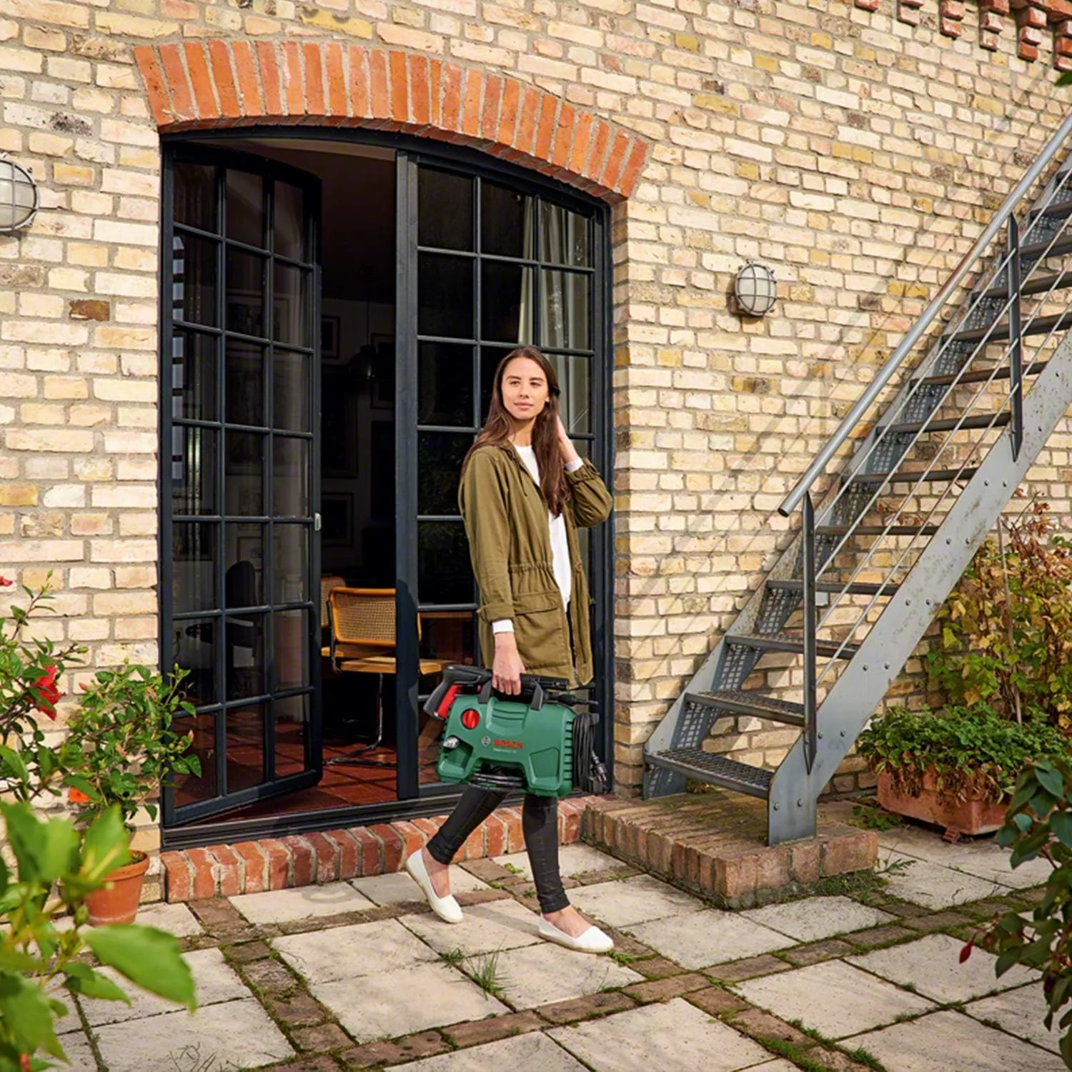 EasyAquatak 120 provides fast and effortless cleaning. This compact pressure washer is easy to use and store thanks to its design and accessory storage. Cleaning cars, patios and garden furniture is easy thanks to the 120 bar cleaning power and the adjustable strength flat and rotating nozzles. The 450 ml, high-pressure cleaning agent nozzle reduces the time required for cleaning by quickly dispensing the cleaning agent. Quick-release connectors and fixing the gun during use for easy cleaning.