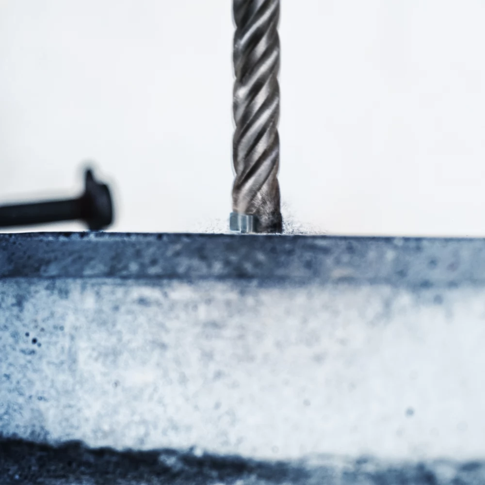 Drilling through reinforced concrete is difficult work and traditionally wears out the hammer drill. Conventional double-edged drill bits get stuck in rebar and eventually break. The solid carbide head of the EXPERT SDS plus-7X is an improved 4-edged design made from a single piece of the hardest metal: It does not jam or soften during hammering.