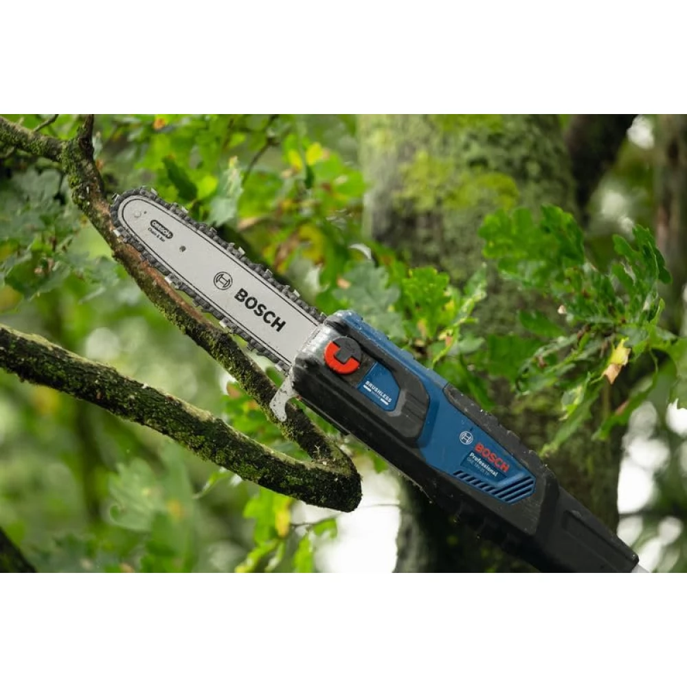 If you are looking for a powerful tool that effectively intersects high hedges and trees without gasoline and smoke, don't look for it: here is the GKE 18V-25 TP Professional Telescopic Branch. With this tool, you can easily reach the high branches, thanks to the 2.9 m telescopic rod without a ladder. Thanks to the high-performance, 18 V engine without a coal brush and variable speed control, the telescopic branch cutting is precisely and lightly sawing the hard branches. In addition, thanks to the robust design of the tool and the chain tensioning system with the magnetic fastener, it is cost -effective and simple.