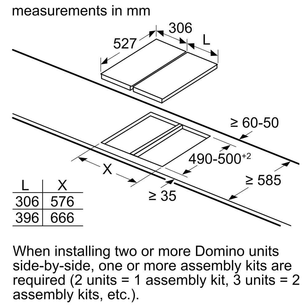 - Depth required for installation: 490 mm