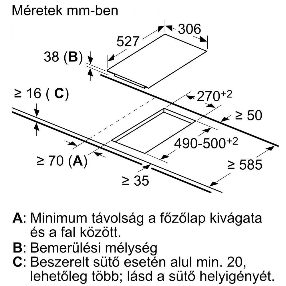 - Minimum width required for installation: 270 mm