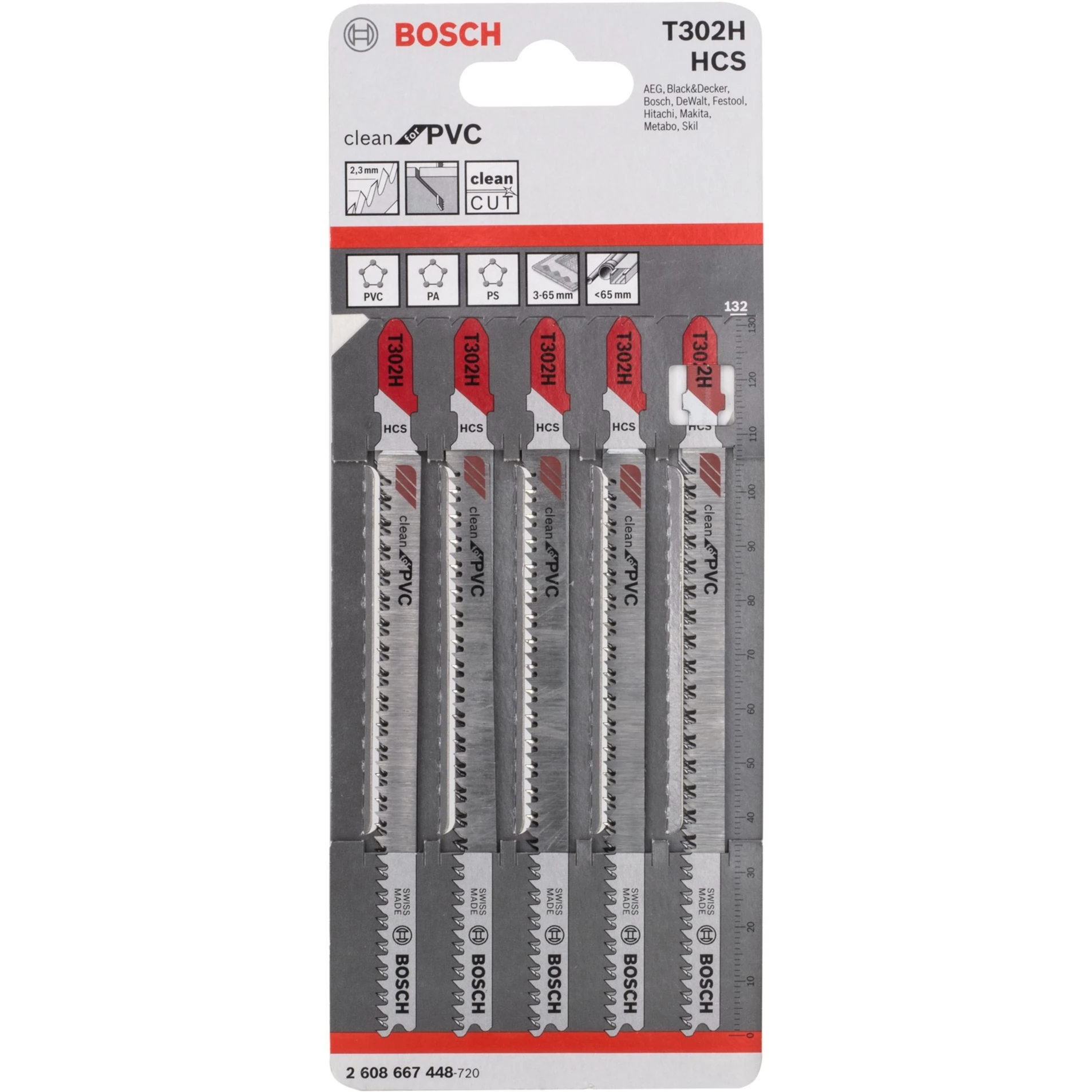 BOSCH PRO Plastics PVC clean T302H jigsaw blades 132mm 5 pcs