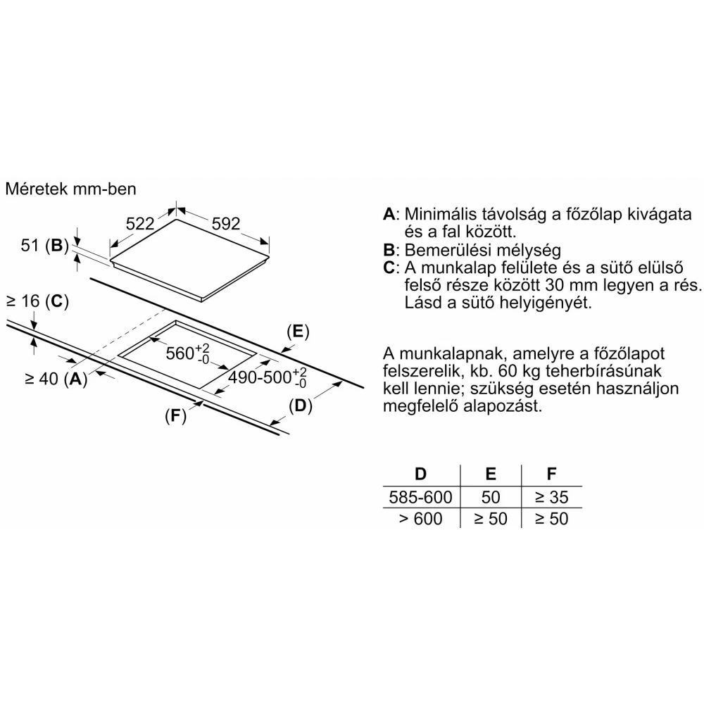 - Minimum width required for installation: 560 mm