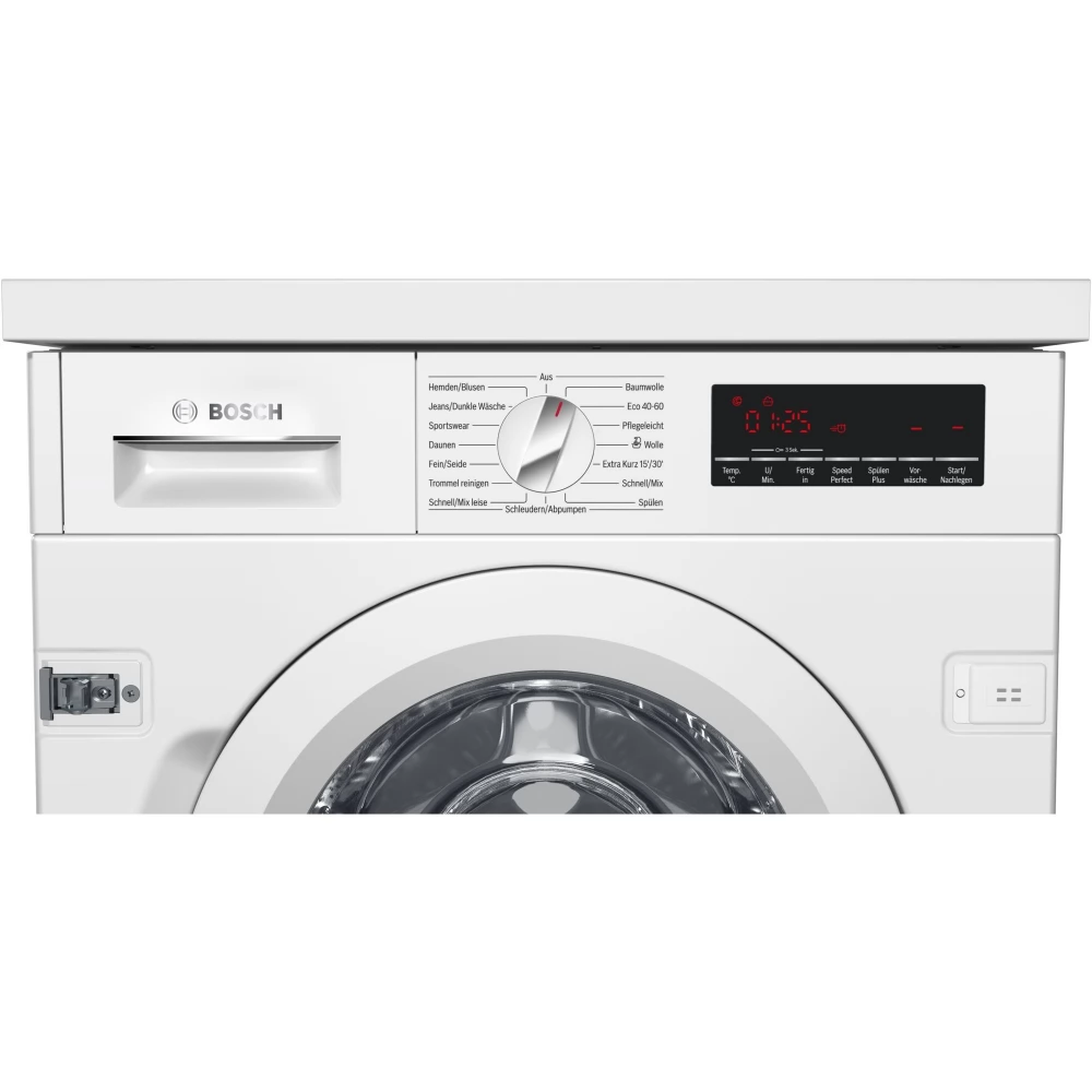 With its 8 kg capacity, the fully integrated Bosch WIW28443 washing machine is ideal for a larger family. With the numerous washing programs, not a single wish remains unfulfilled. The sensor-controlled, stepless automatic volume control ensures that only the amount of water that is actually needed is used. Thanks to the refill function, forgotten items of clothing can be added even after starting the washing program. Thanks to the unique drum structure of the VarioDrum, it enables gentle and efficient washing. Program status and remaining running time are clearly visible as high-resolution symbols projected onto the floor using the TimeLight function. When it comes to safety, the WIW28443 also shines with its AquaStop function, foam detection and anti-vibration design. The VarioPerfect function saves energy and time thanks to switchable program options. Thanks to the EcoSilence Drive technology, the WIW28443 is extremely energy-efficient and operates quietly, with a particularly long service life.