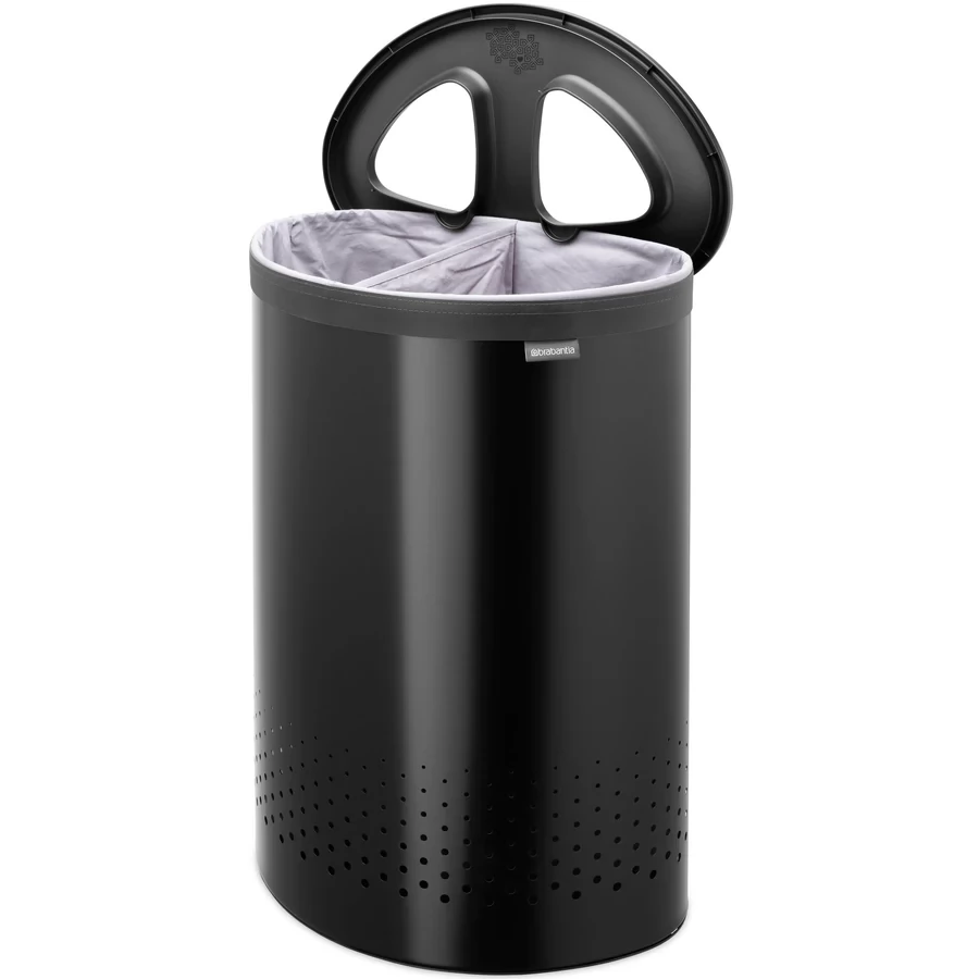 Brabantia Laundry bin Selector dirt holder with ventilation openings, 2 -piece velcro -rifle collection bag, oval shape, large size 55L (2x27.5l), plastic cover, steel, dark gray.