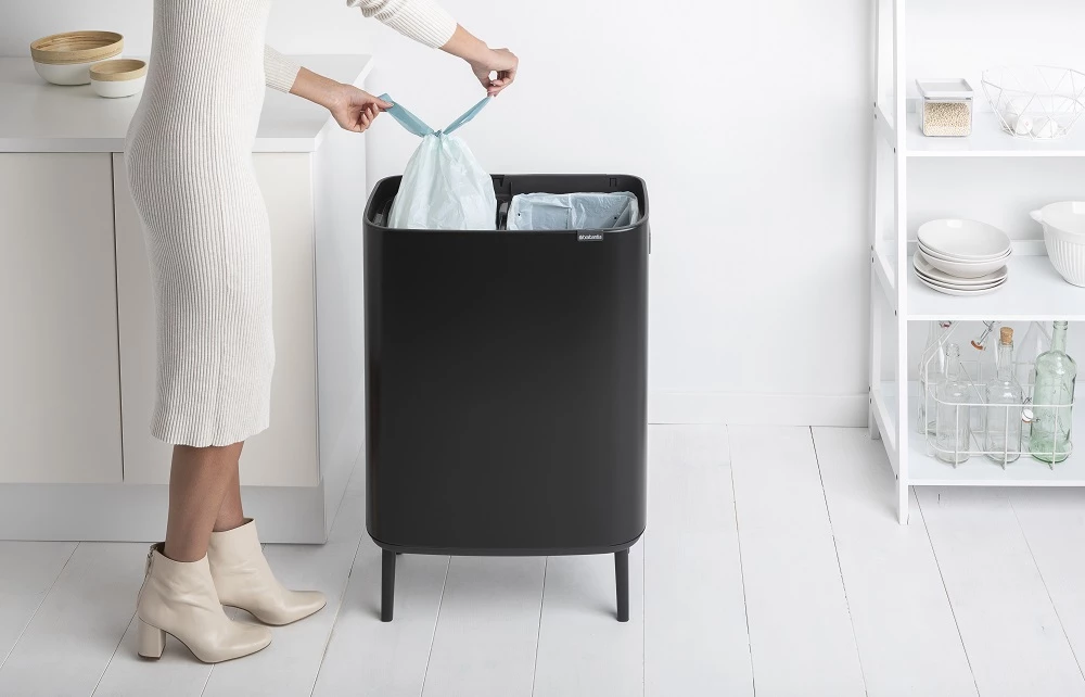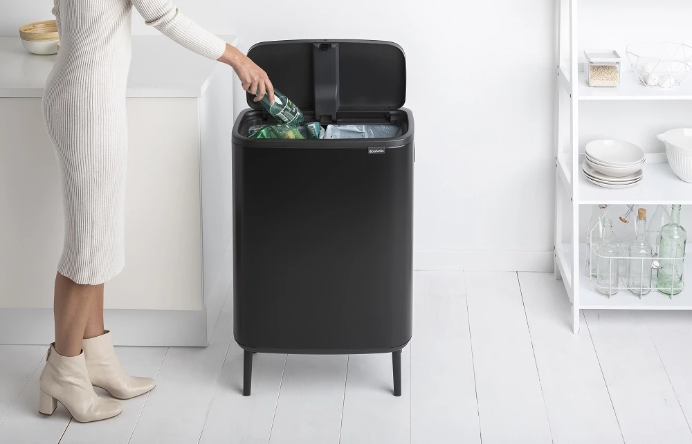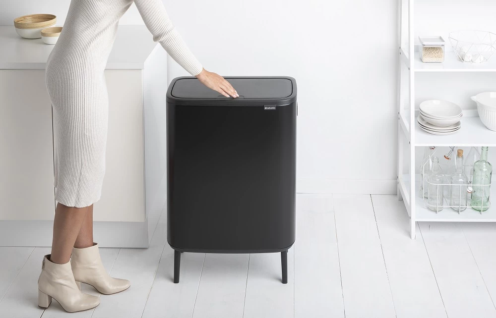 BRABANTIA Bo Touch Bin Hi szelektív waste collection Soft-Close cover raised lábakon standing plastic container XXL 2x30L - O size steel matt black - 130625