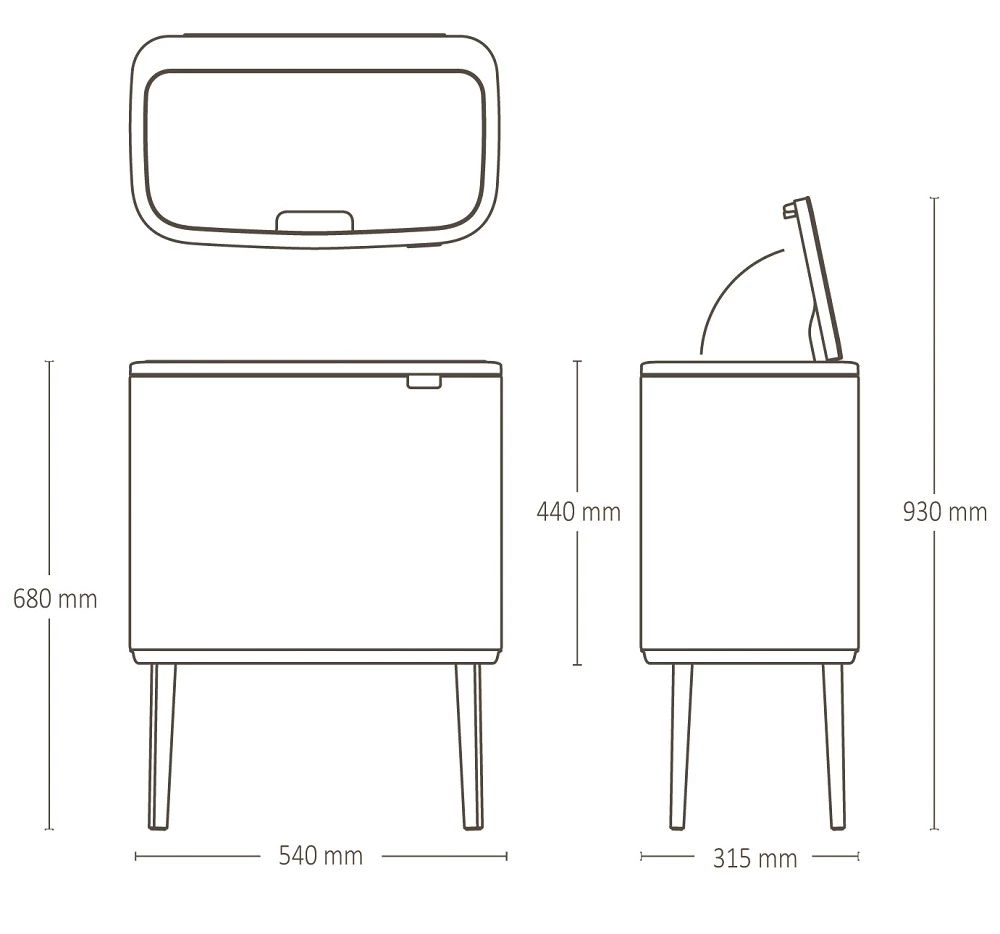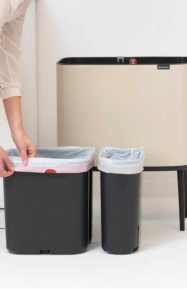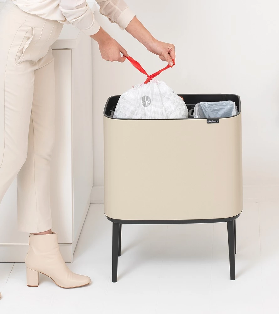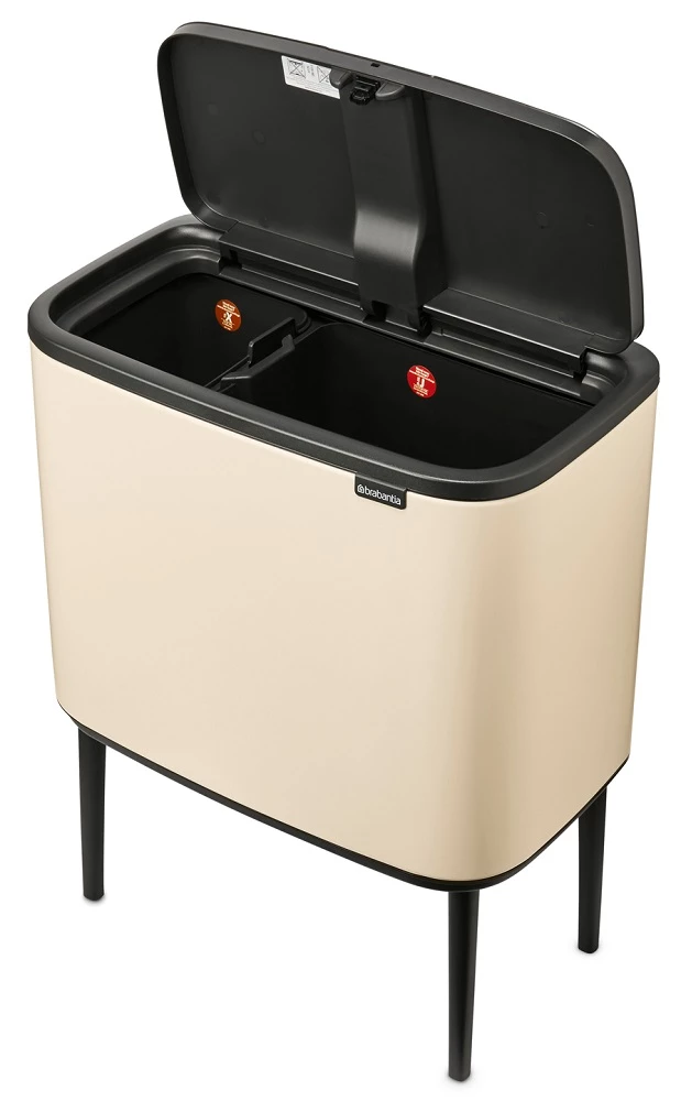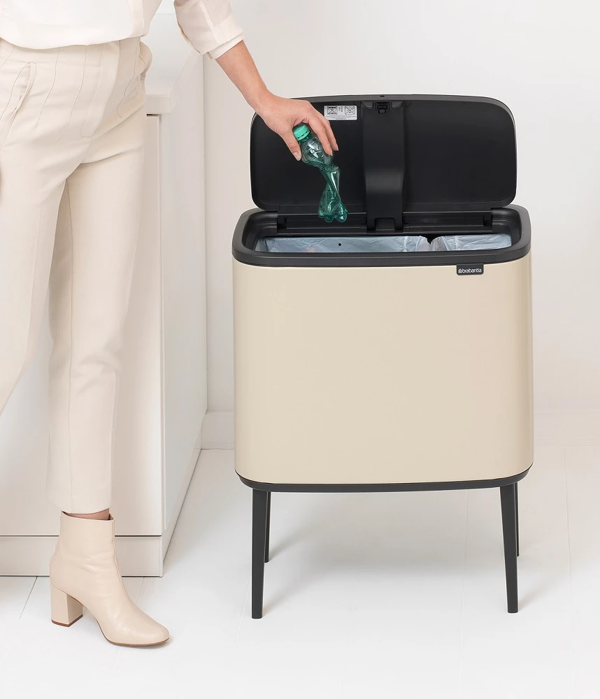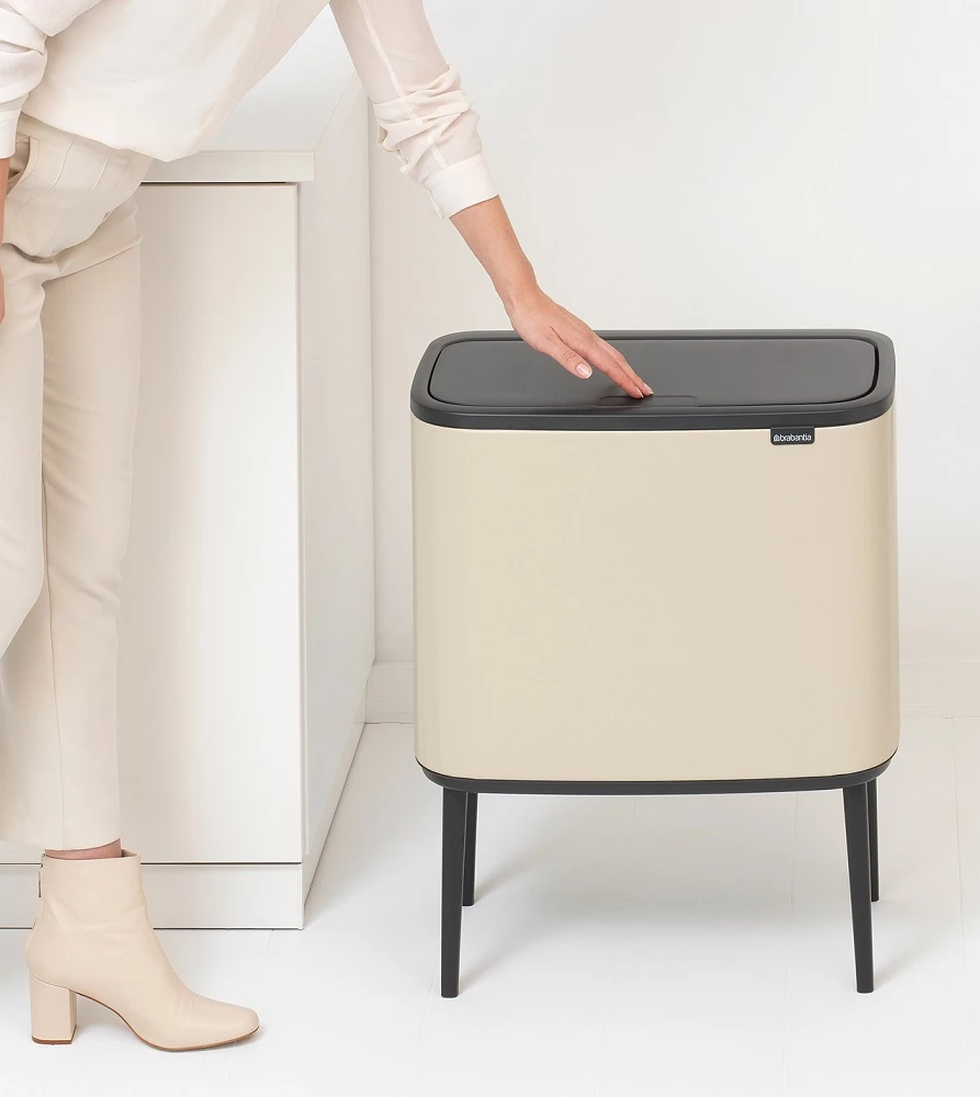 BRABANTIA Bo Touch Bin nyomófedeles szelektív waste collection raised lábakon standing plastic container 11+23L - X+J size steel bright beige - 201585