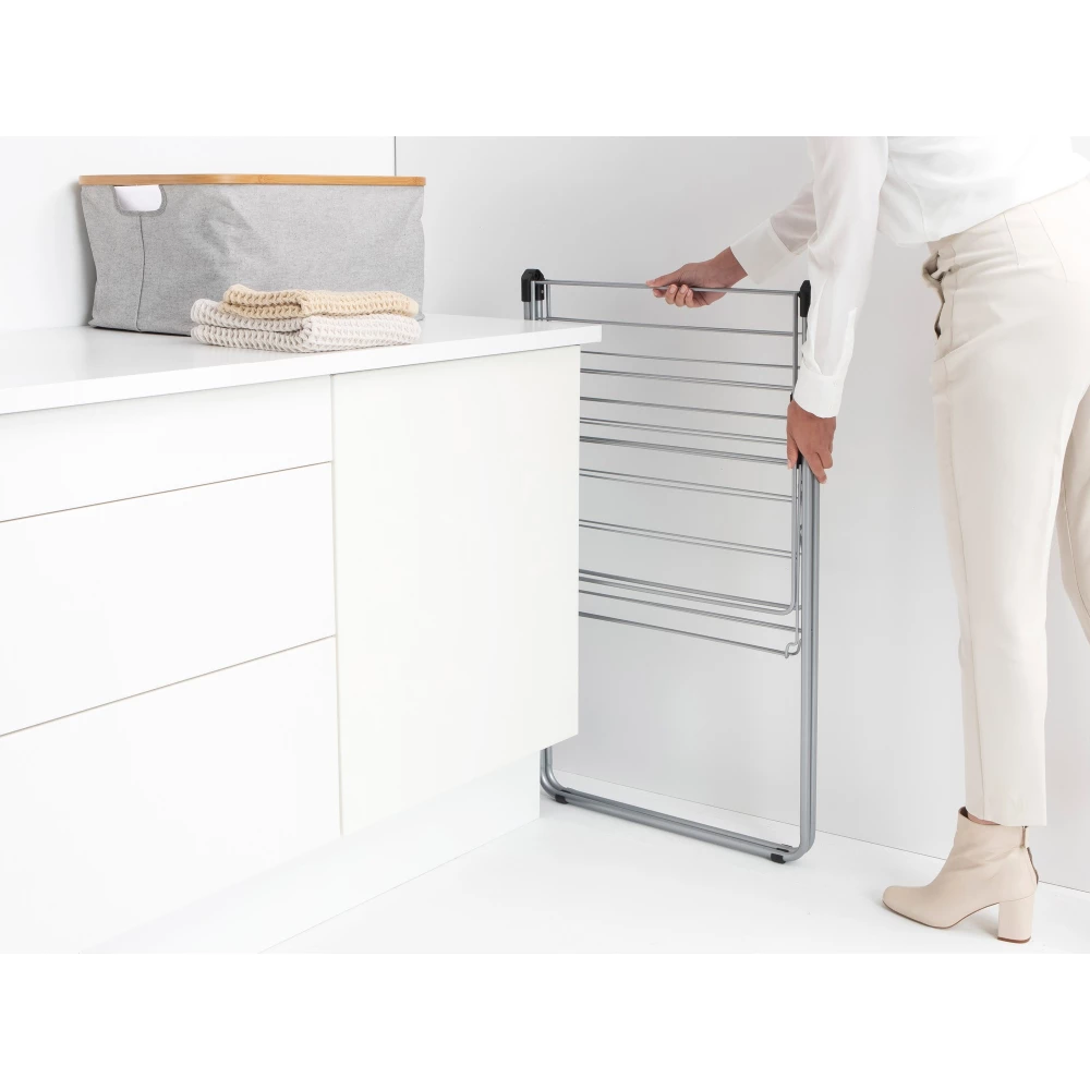 BRABANTIA HangOn Drying Rack clothes dryer állvány. 15m drying length. 4pcs ruhaakasztó kampó. 12kg teherbírás. összecsukható. acél. metal grey - 403361