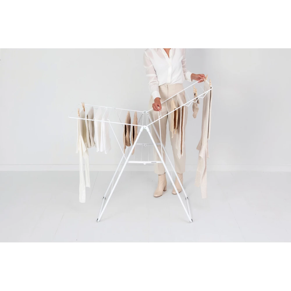BRABANTIA HangOn Drying Rack clothes dryer állvány. 20m drying length. 6pcs ruhaakasztó kampó. 12kg teherbírás. összecsukható. acél. white - 403385