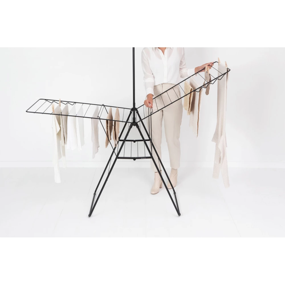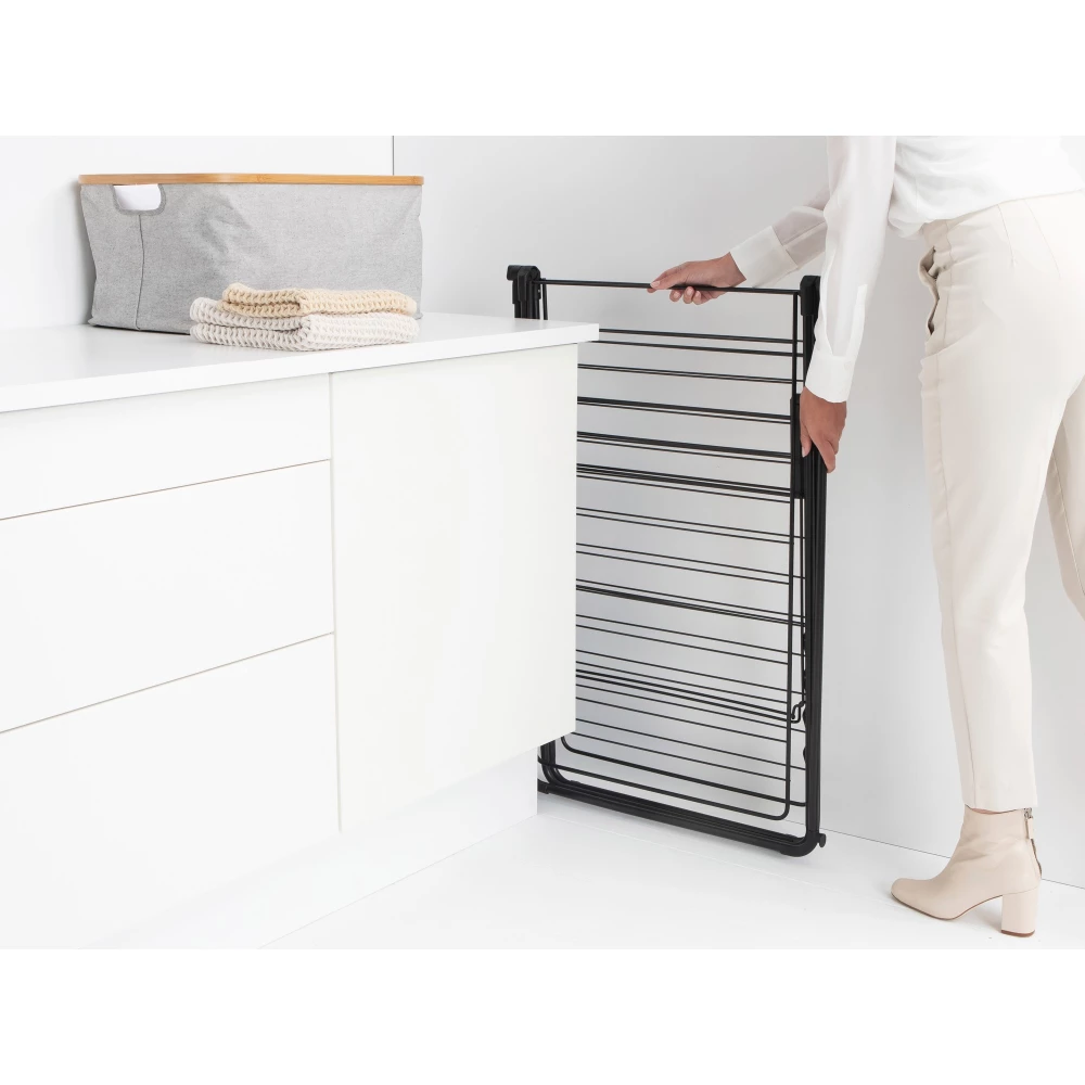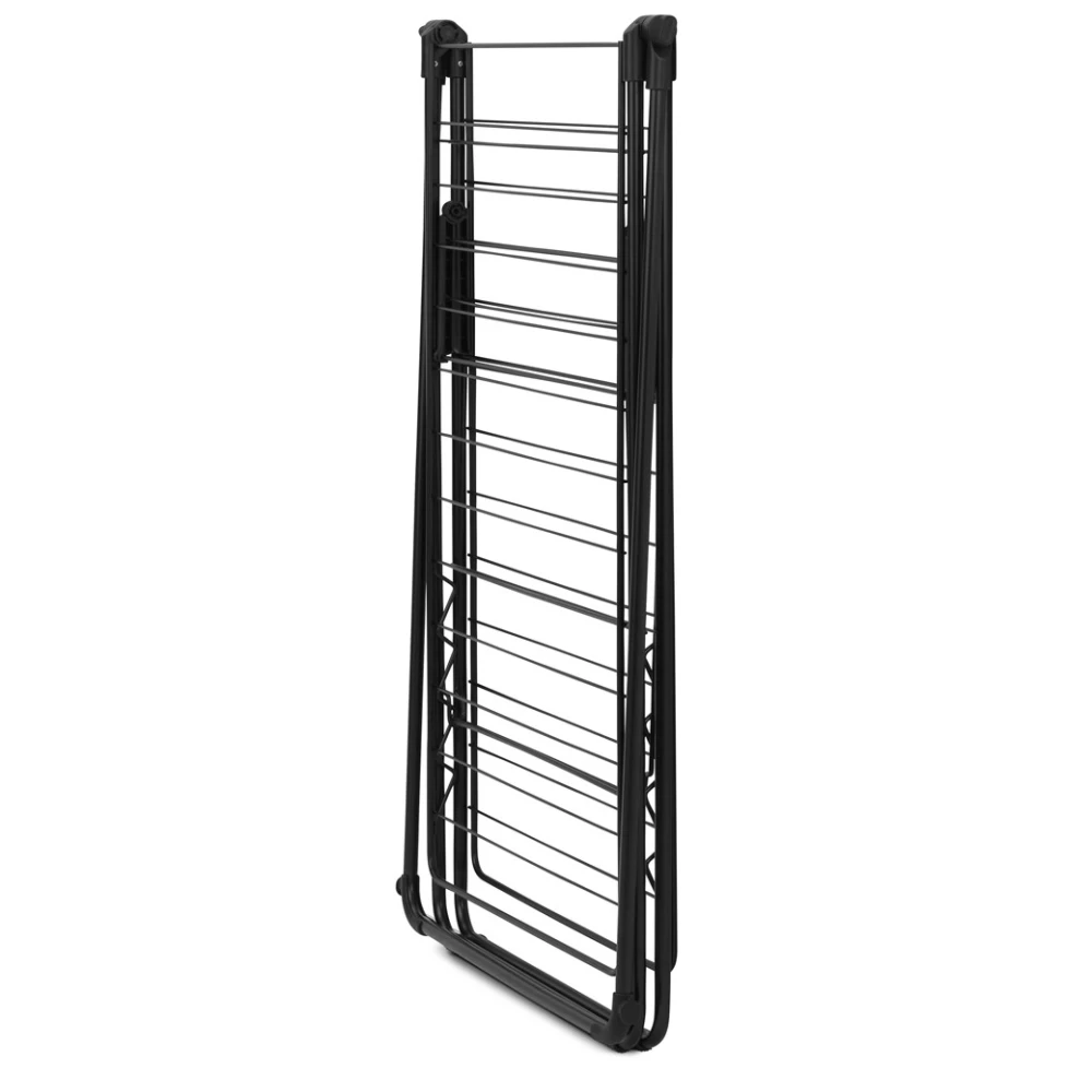 BRABANTIA HangOn Drying Rack clothes dryer állvány. 25m drying length. felhajtható vállfa tartórúddal. 8pcs ruhaakasztó kampó. 12+10kg teherbírás. összecsukható. acél. matt black - 403521