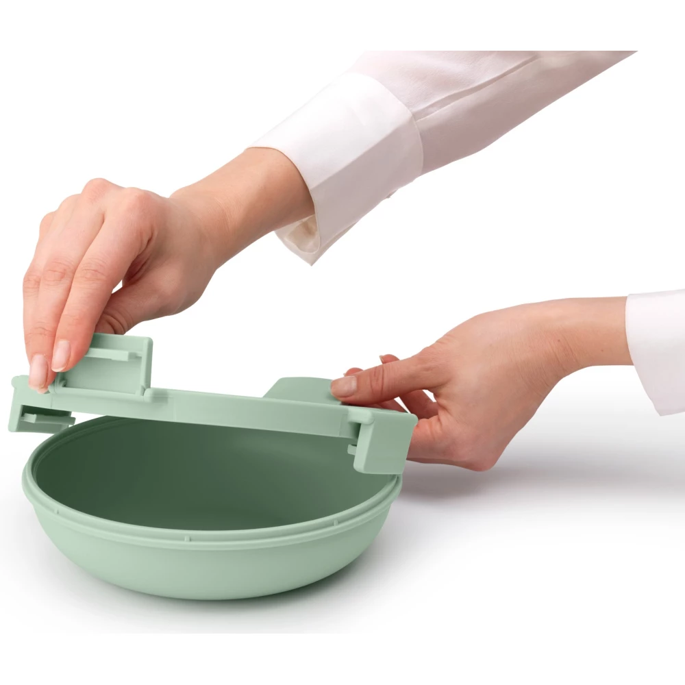BRABANTIA Make & Take Lunch Bowl ételhordozó tál. 1000 ml. szivárgás- and légmentes záródás. bepattintós (clip-on) zárómechanizmus. flat - wheel forma. BPA rescue műanyag. jáde green - 206320
