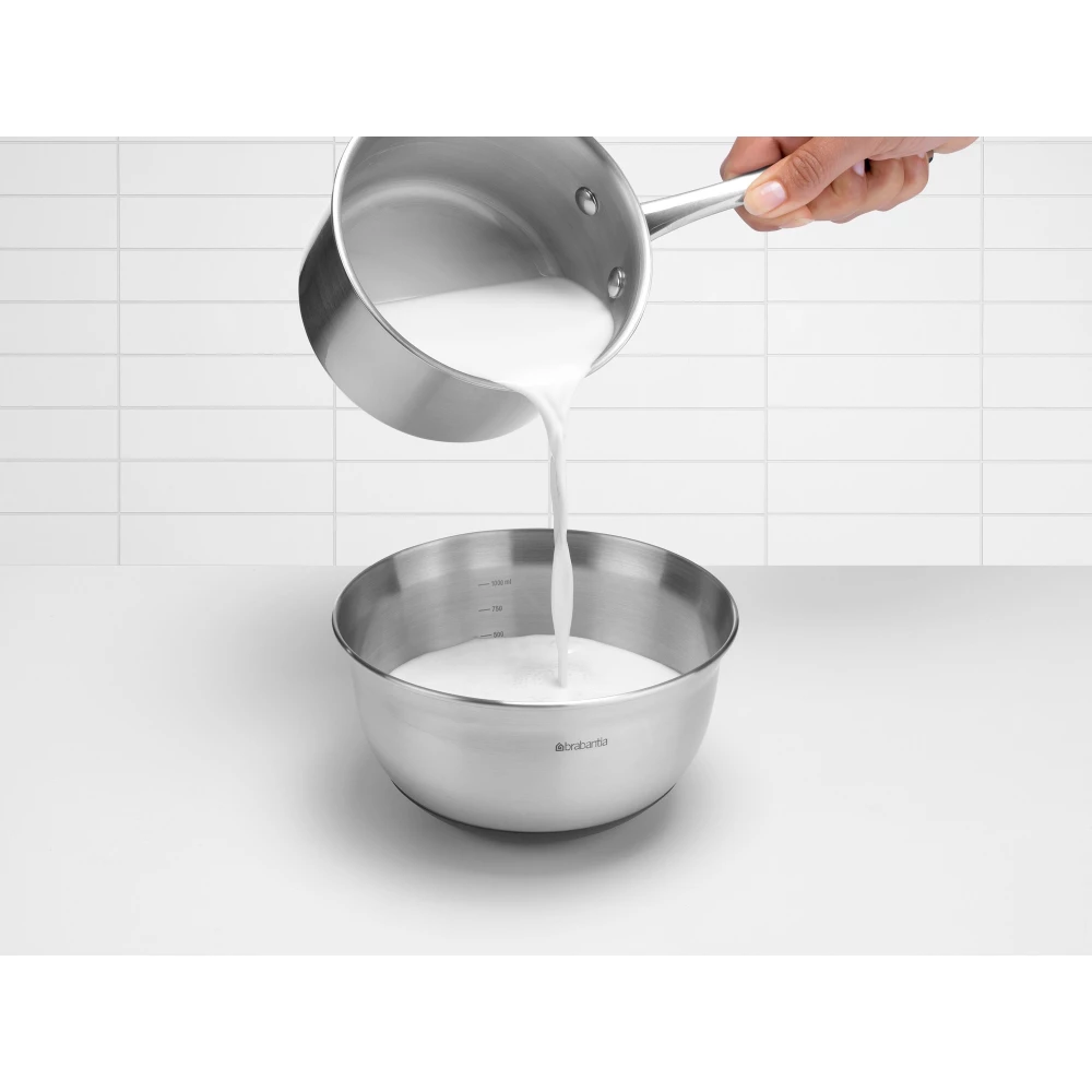 BRABANTIA Profile Bake & Mix. Mixing Bowl keverőtál. 1L. kiöntőperemmel. internal mérőskálával. hőálló. silicone alj. r.m. steel test. silk matt - 363825