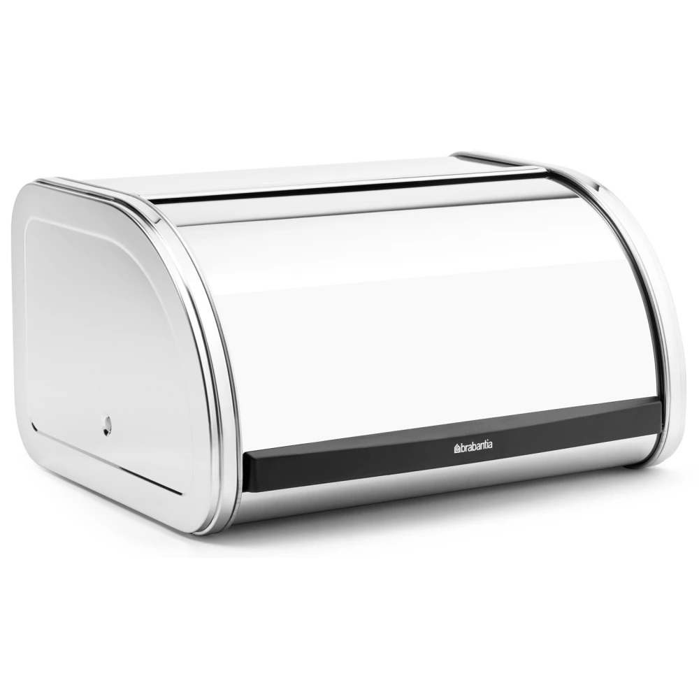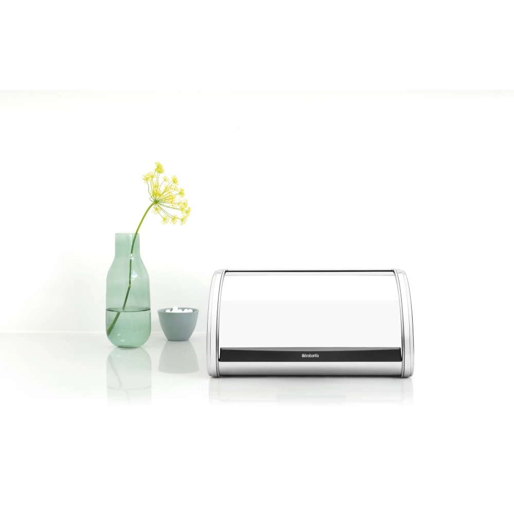 BRABANTIA Roll Top kenyértartó halkan záródó. befelé gördülő fedéllel. 316mm széles. 1 kenyérhez. curved forma. r.m. acél. bright - 339585