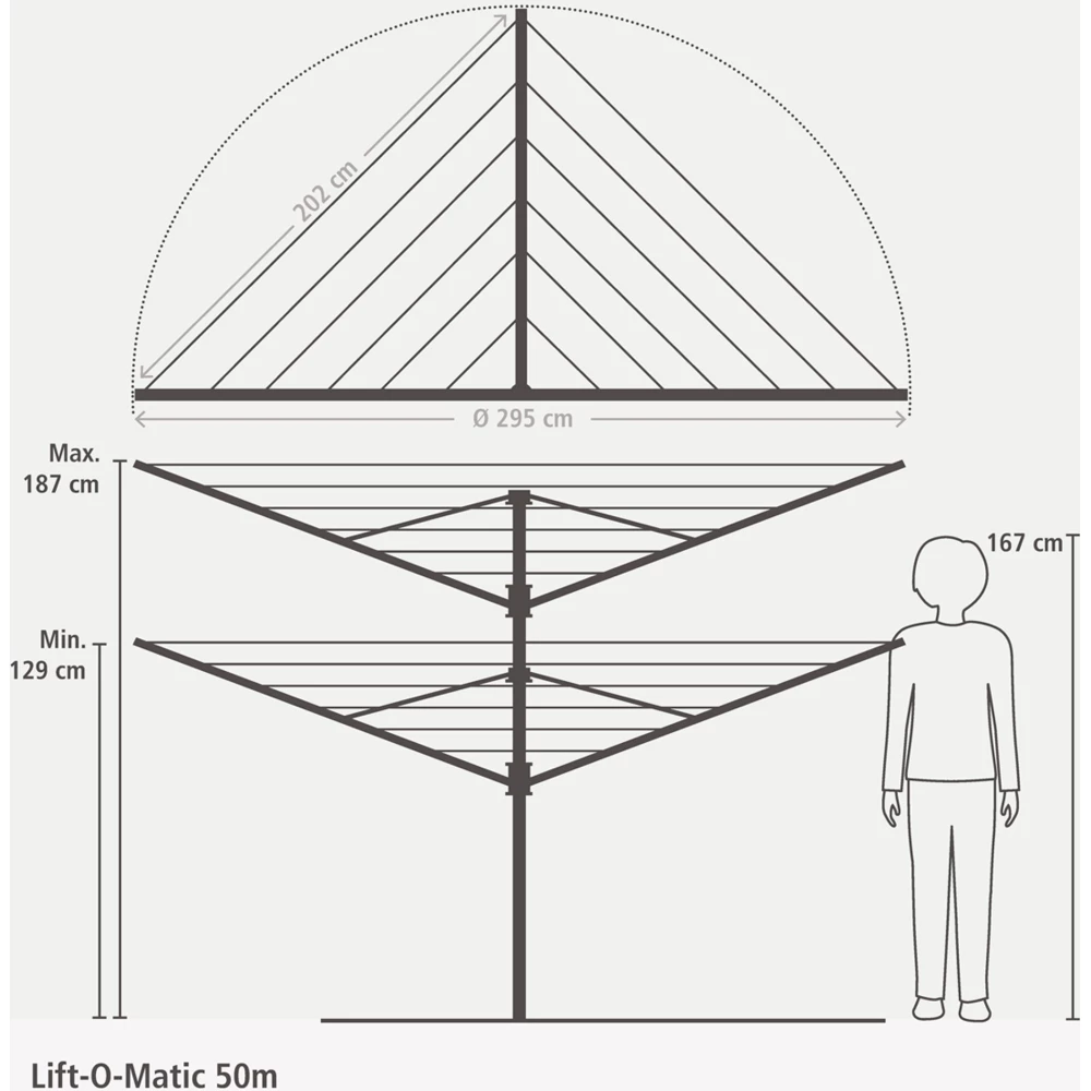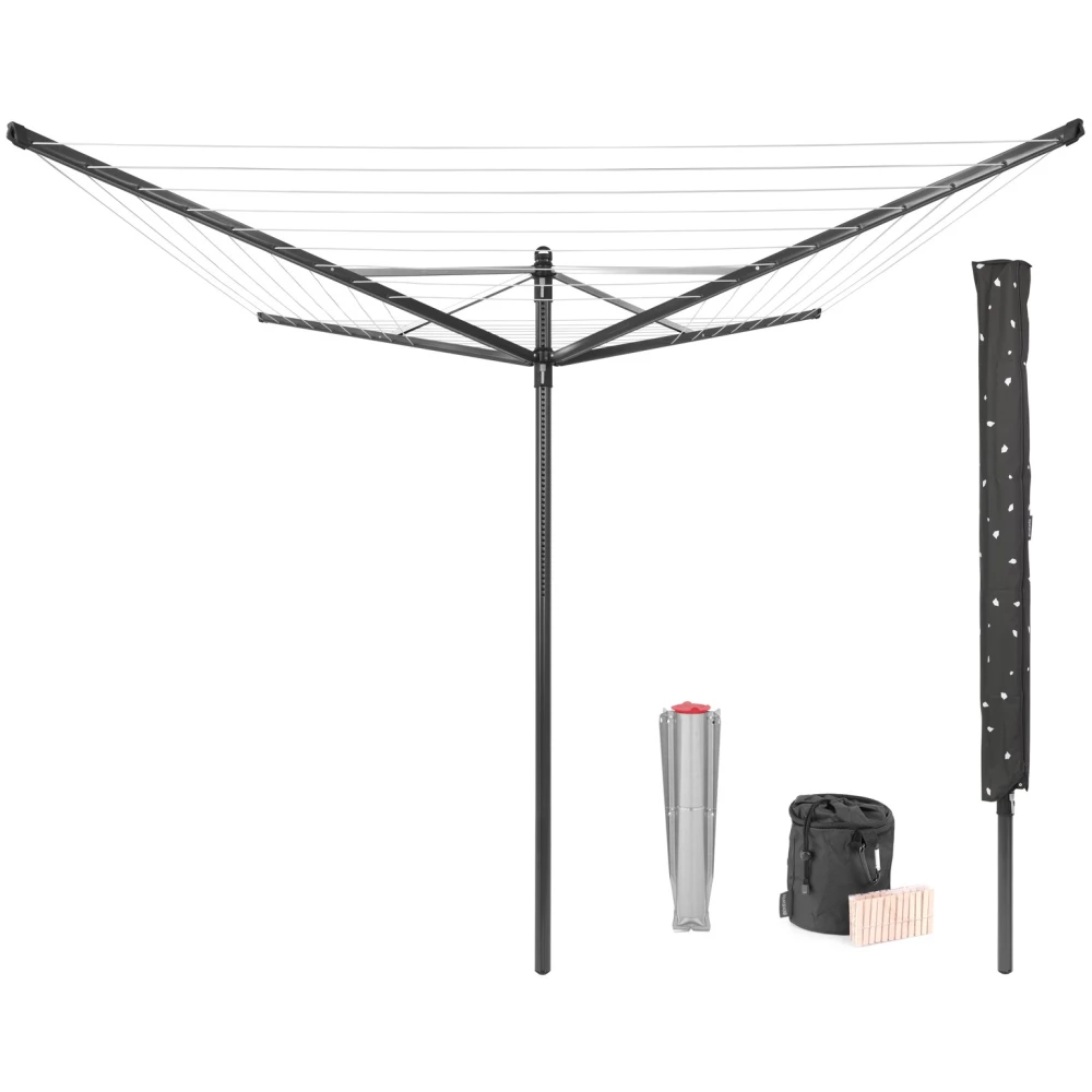 BRABANTIA Rotary Dryer Lift-O-Matic garden clothes dryer 50m. UV-álló. forgatható. D=45mm. settable magasság. rögzítése ground Inserts can be metal konzollal. védőzsákkal. csipesztartóval. antracit - 290503