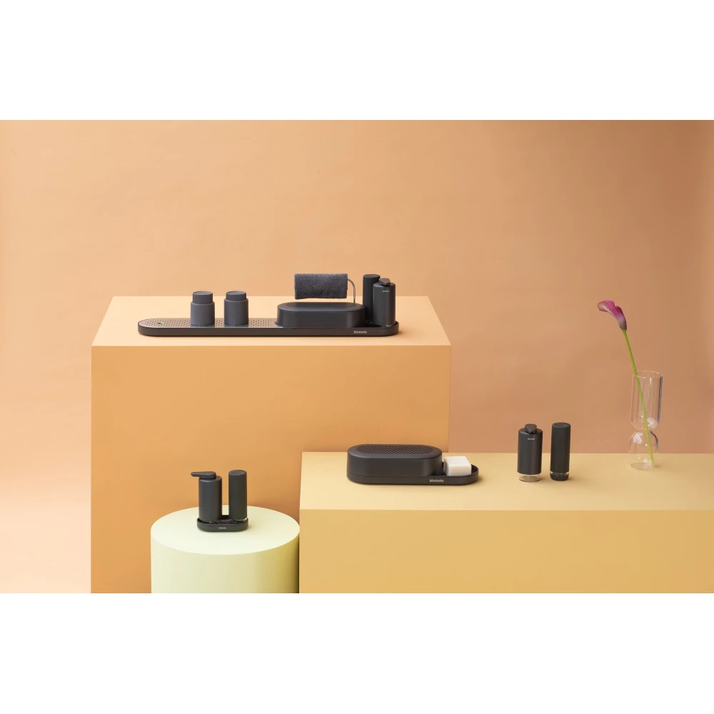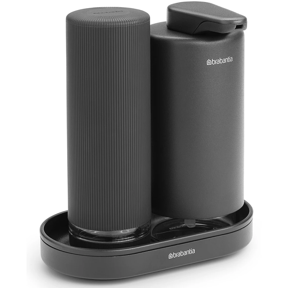 BRABANTIA SinkStyle Soap Dispenser Set szappan- and mosogatószer-adagoló set 2x200ml. csepptálcával. csepegésmentes. műanyag. acél. határtalan grey ásványi textúra - 227943