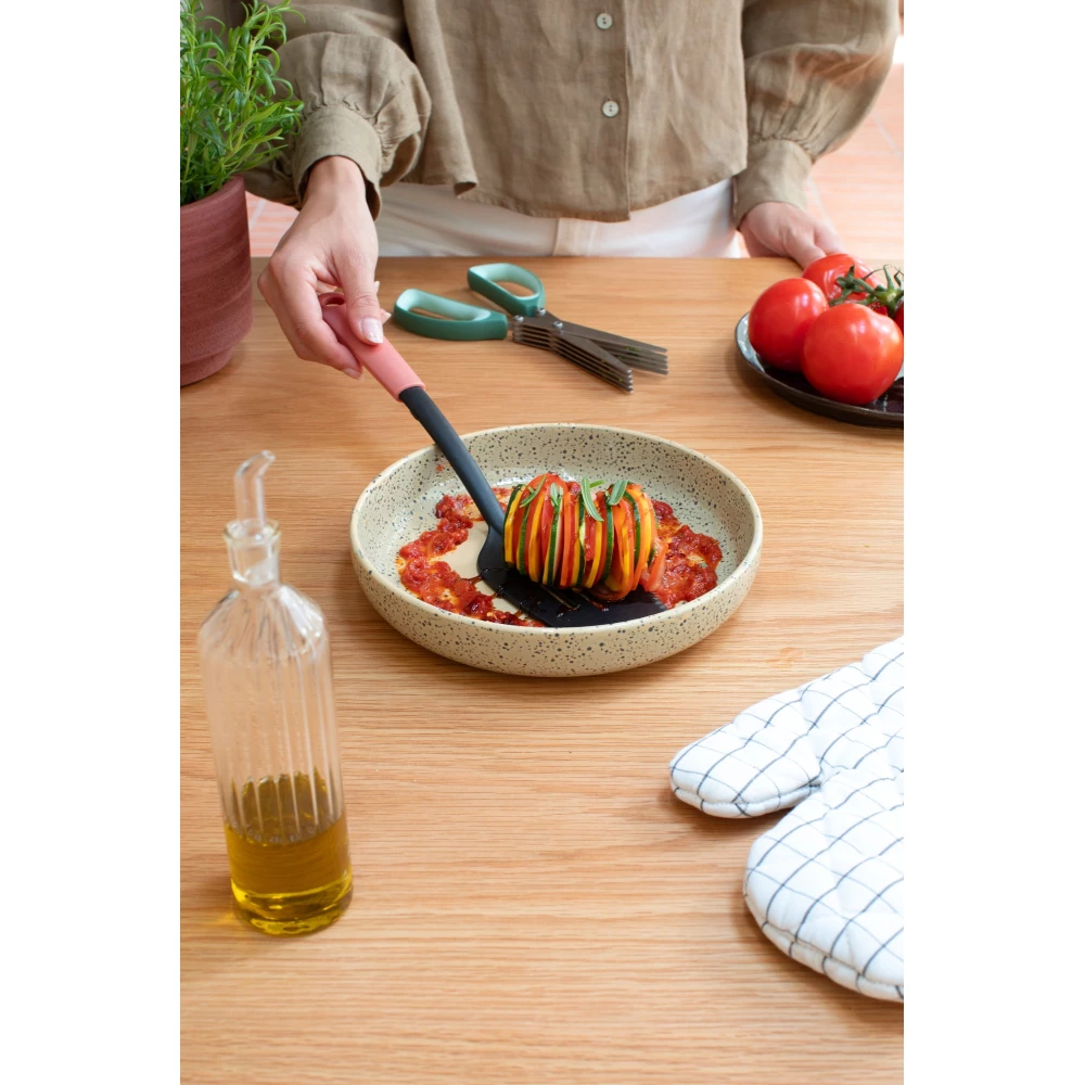BRABANTIA Tasty+ Cook & Serve spatula. egyik right vágóéllel. mounted serpenyőtartóval. akasztóval. hőálló. műanyag. teracota pink - 122804