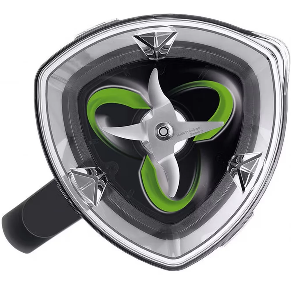 60% finer and 4 times faster*. The uniquely designed triangular cup directs the ingredients back to the active blending areas more quickly. * Compared to JB5160