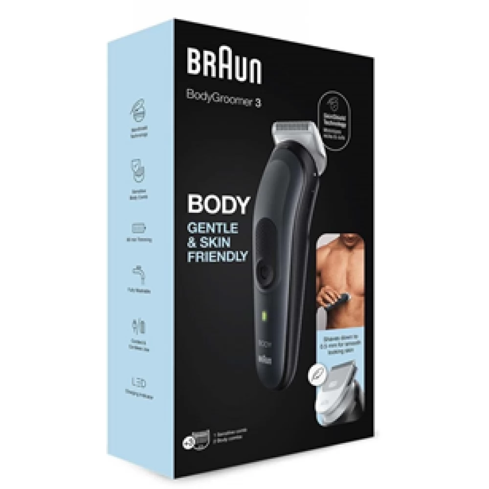 - Perfect tenderness: The Braun 3 men's body shaver protects the skin even in the most sensitive areas. Men's body hair care and body hair cutting anywhere.