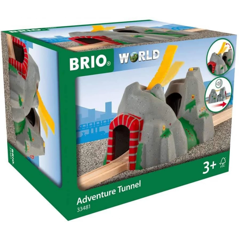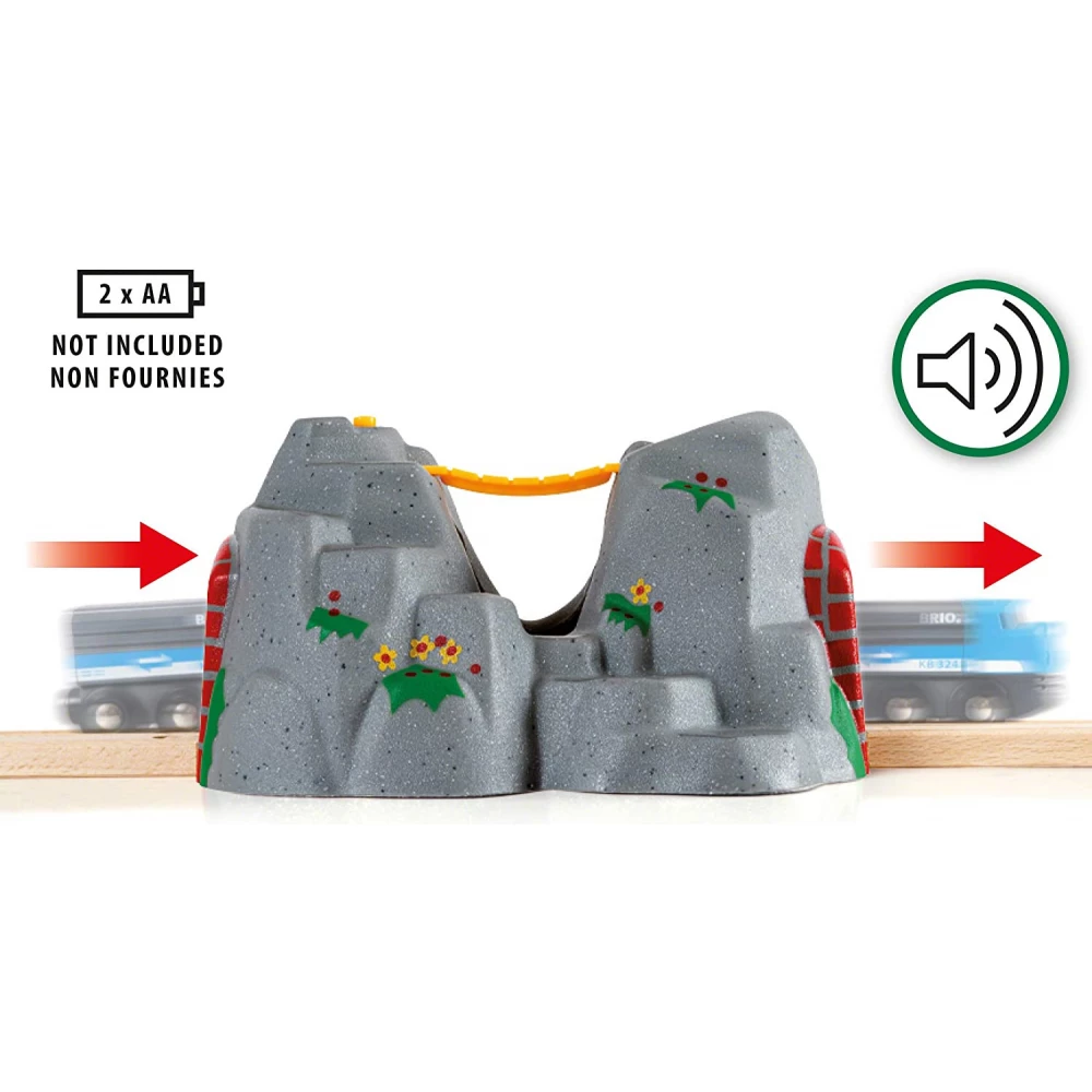 Adventure tunnel accessory that makes a sound when the locomotive passes through it or when you press a button. Dimensions: 178 x 122 x 234 mm.