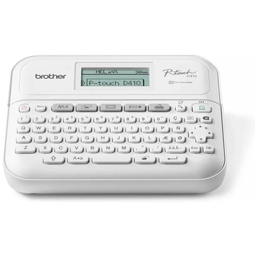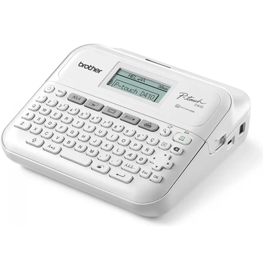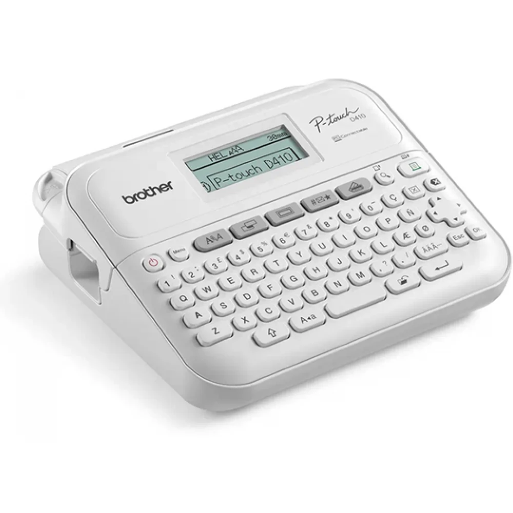 The PT-D410 is a compact, easy-to-use label printer that prints easy-to-read laminated labels to help organize important files and folders, identify home and office equipment and cables, or storage boxes.