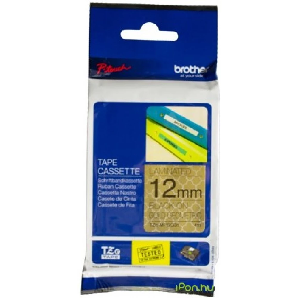 Brother TZE-MPGG31 label tape, black on gold, 4m x 12mm.