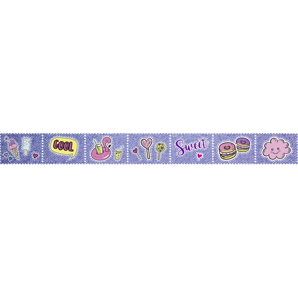 Decorative adhesive tape with seven types of motifs, stamp perforation that can be removed individually. Length of 2.4 m.