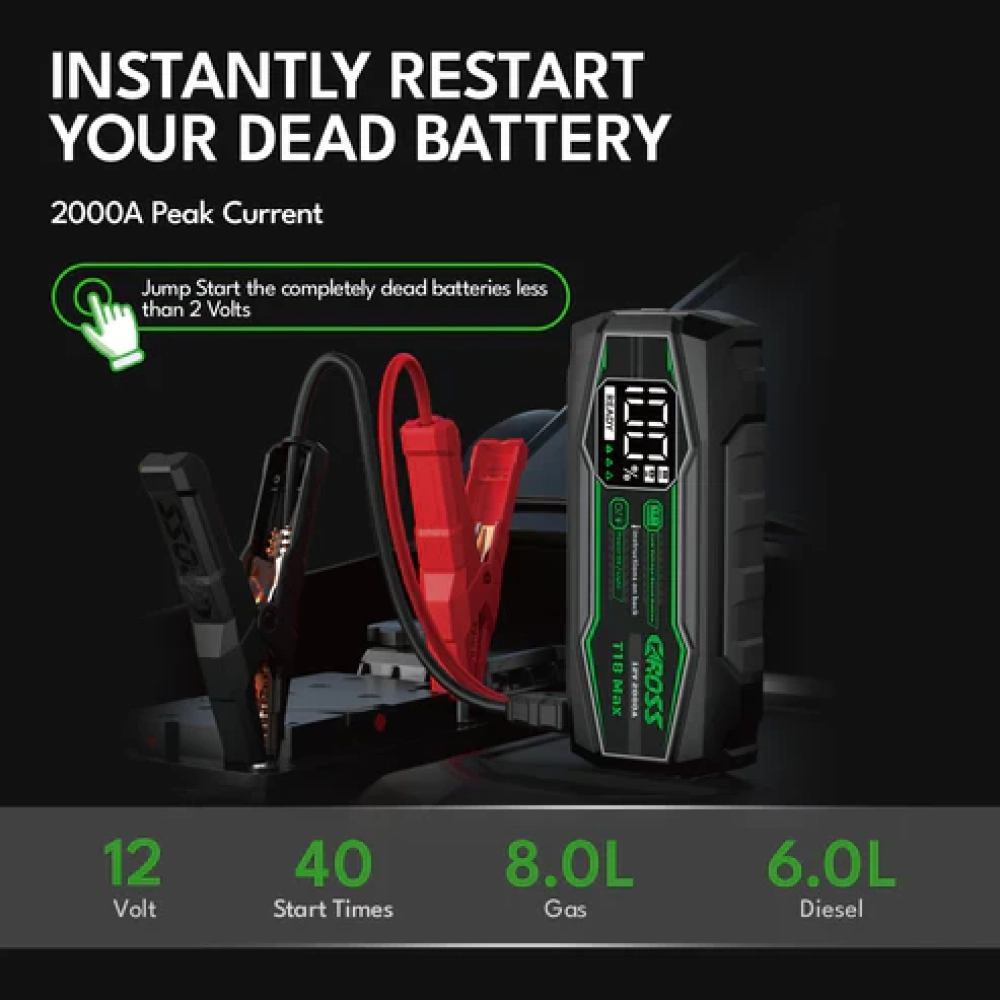 2000 Peak Current - Starts 8.0L petrol and 6.0L diesel vehicles with ease; ideal for cars, SUVs and trucks.