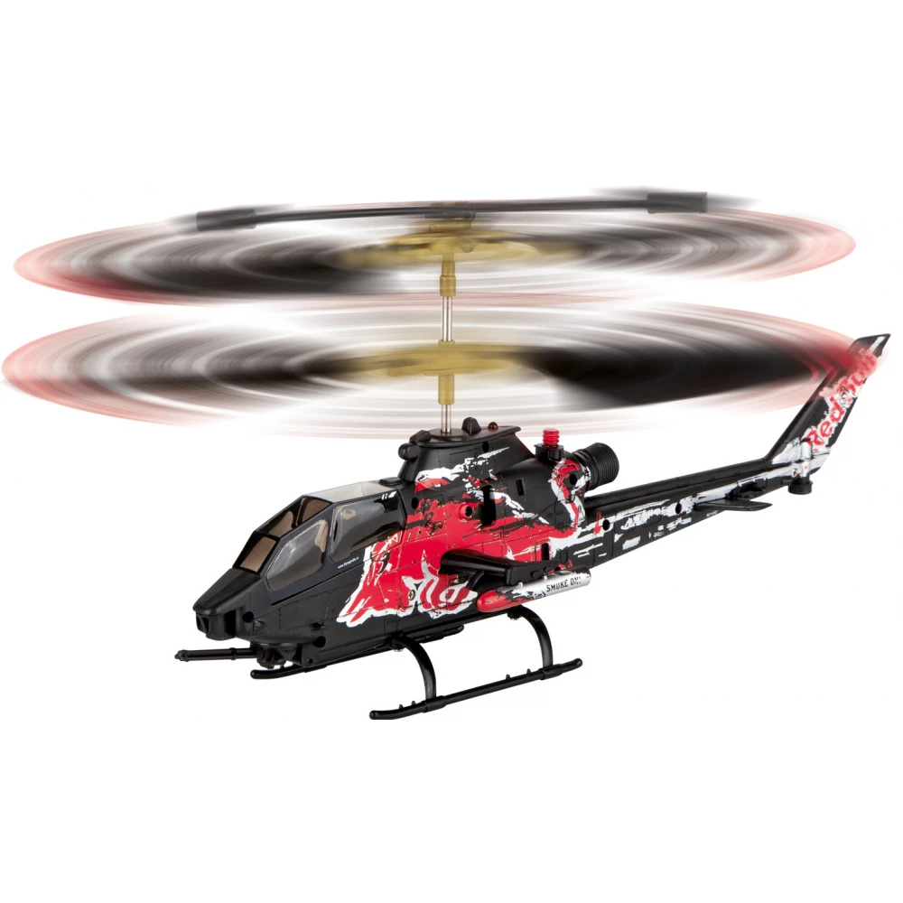 Remote-controlled Red Bull model Bell Cobra helicopter with 100m range, 2.4 GHz frequency remote control. The helicopter also has an advanced stabilization system, a solid structure and LED lighting.