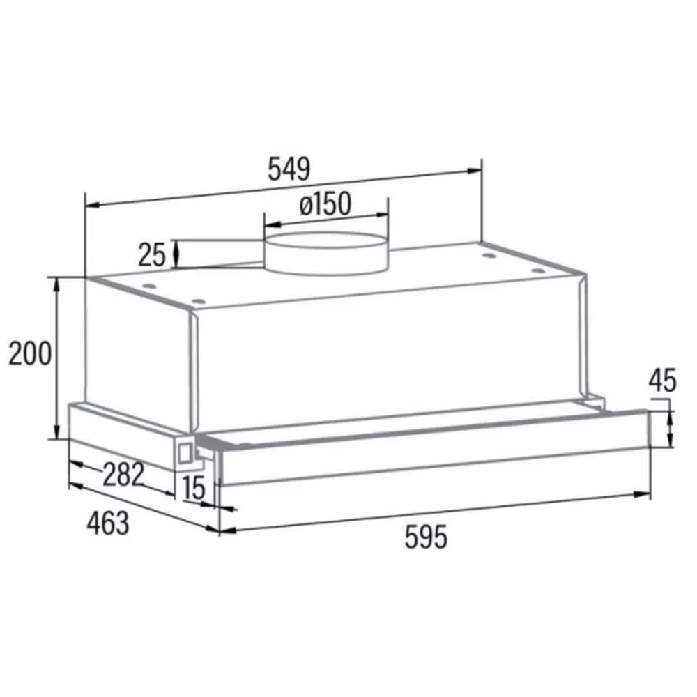- Dimensions (width x height x depth): 595 x 200 x 282 mm