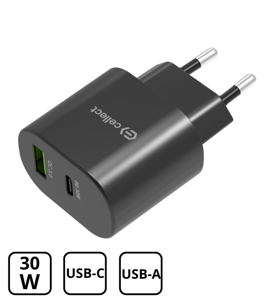 CELLECT networking charger adapter PD30W/QC3.0 18W v2 black