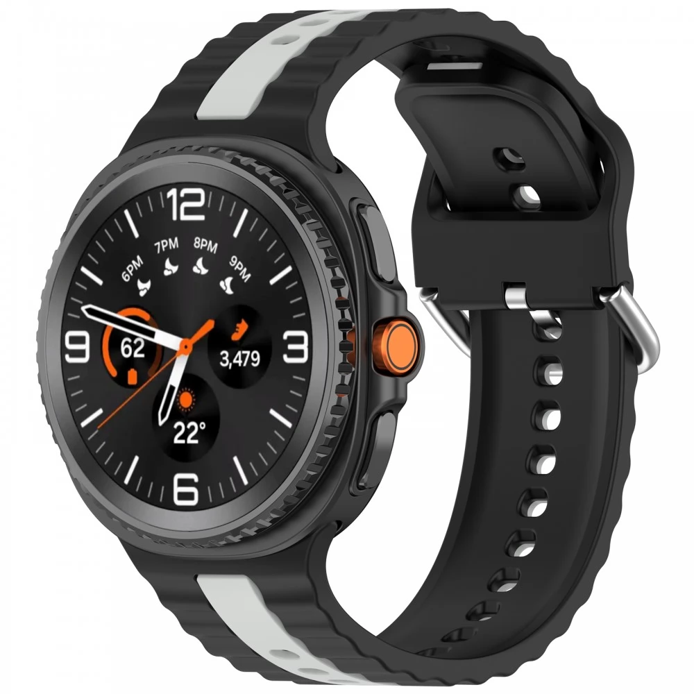 CELLECT Samsung Galaxy Watch 8/Classic black watch strap white csíkokkal 22mm