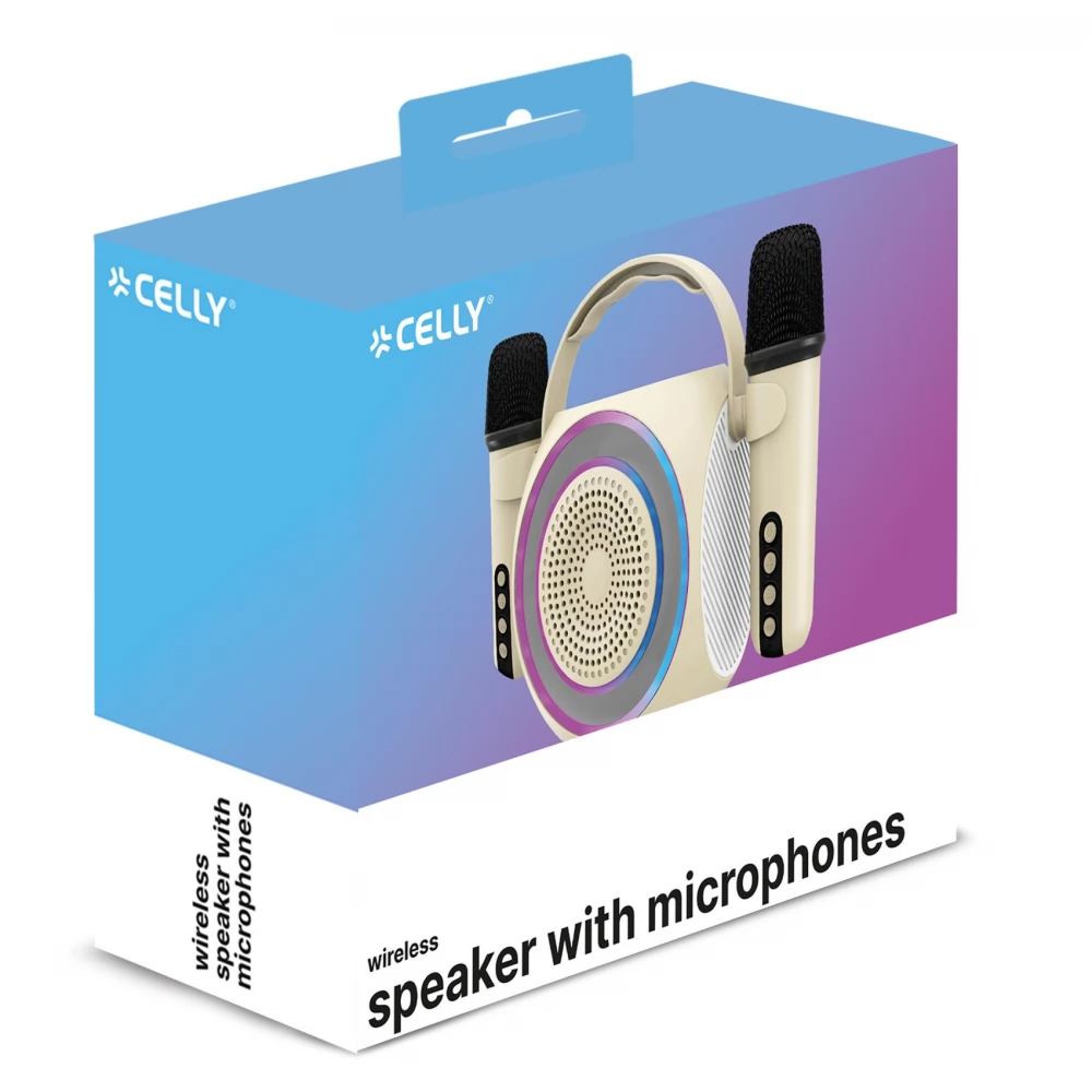 Celly Partymic2 karaoke speaker, 2 wireless microphones, RGB led, bluetooth, 1800mAh.