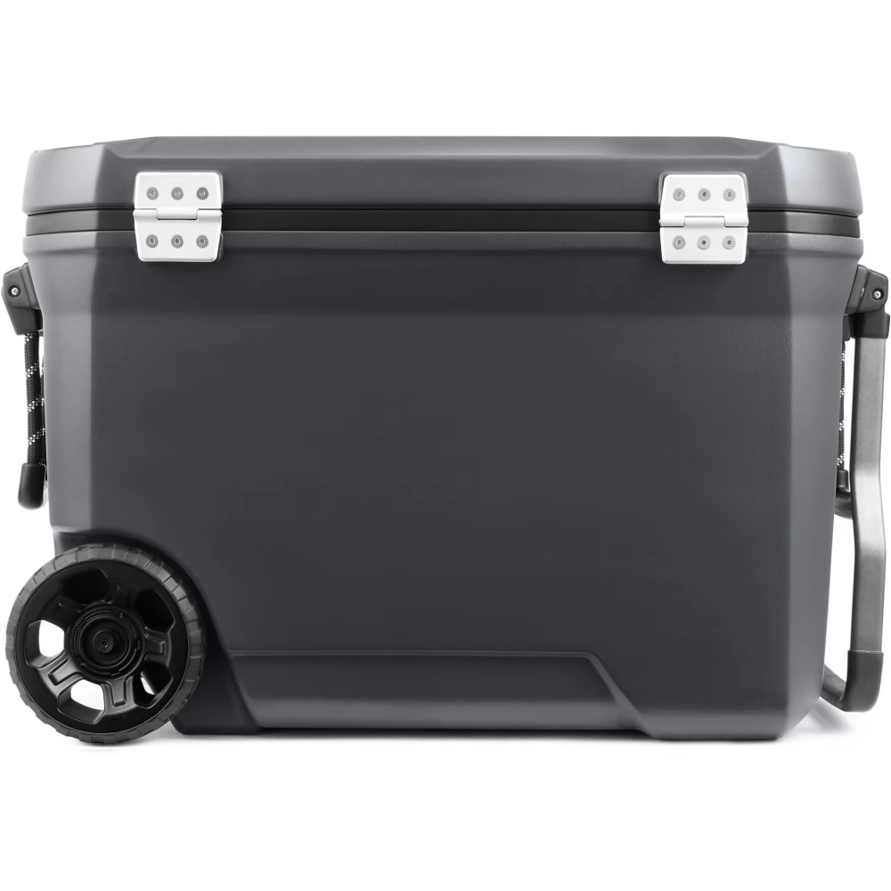 The 66-liter cooler comfortably holds 97 cans of soft drinks or 48 cans of soft drinks with a little less than 16 kg of ice. It can then keep ice for up to 5 days, so you can enjoy chilled drinks all weekend long. The Convoy is also equipped with stainless steel features and heavy-duty latches that are sure to withstand the roughest of rides. The collapsible metal handle and extremely durable wheels ensure convenient transport. Non-slip handles made of rope are also useful.