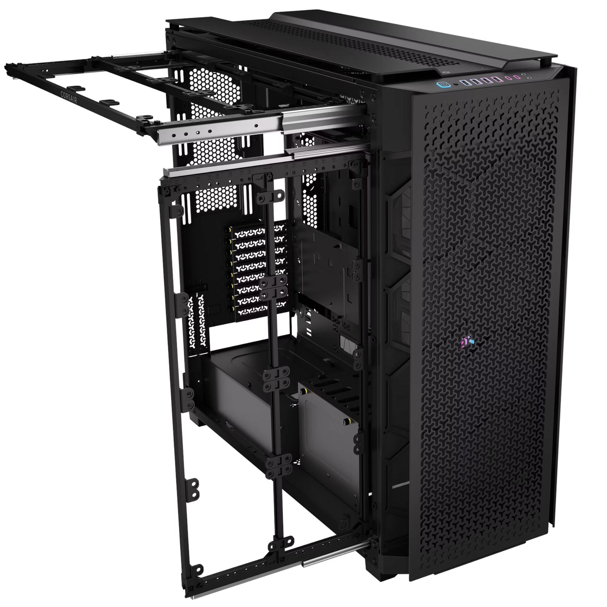 The CORSAIR iCUE LINK 9000D RGB AIRFLOW Super Full-Tower PC Case offers massive space, excellent cooling capacity and design innovations to build the machine of your dreams. - Stylish mesh front panel...