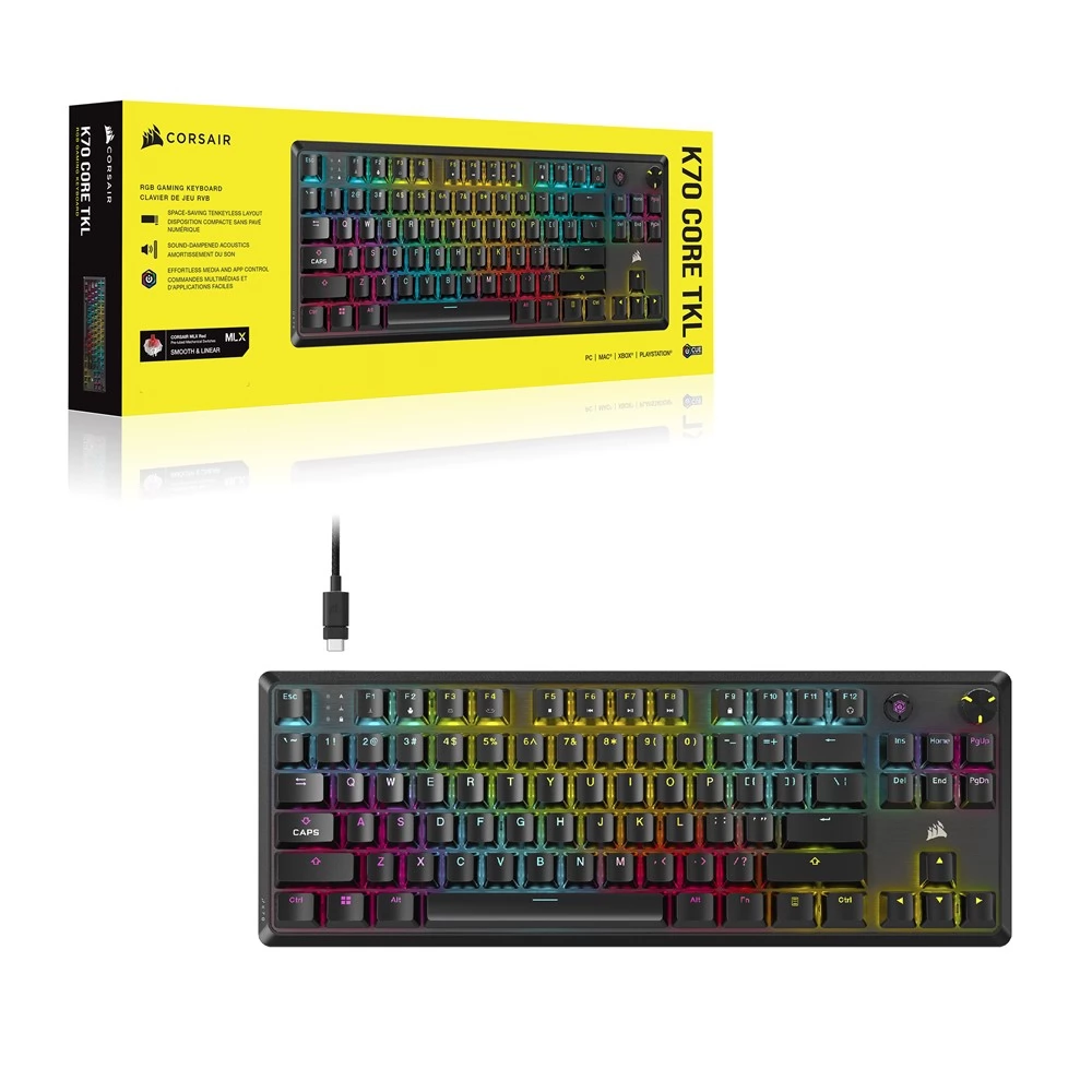 Play best and leave more space for the mouse. The Corsair K70 Core TKL game keyboard offers stunning game and typing on a compact, ten -key footprint. Enjoy silky smooth, fluctuating keystrokes with pre-oiled Corsair MLX Red V2 linear switches lighted up by an ultra-gloss button on an RGB per ultra-gloss button and acousticly double-layered sound.
