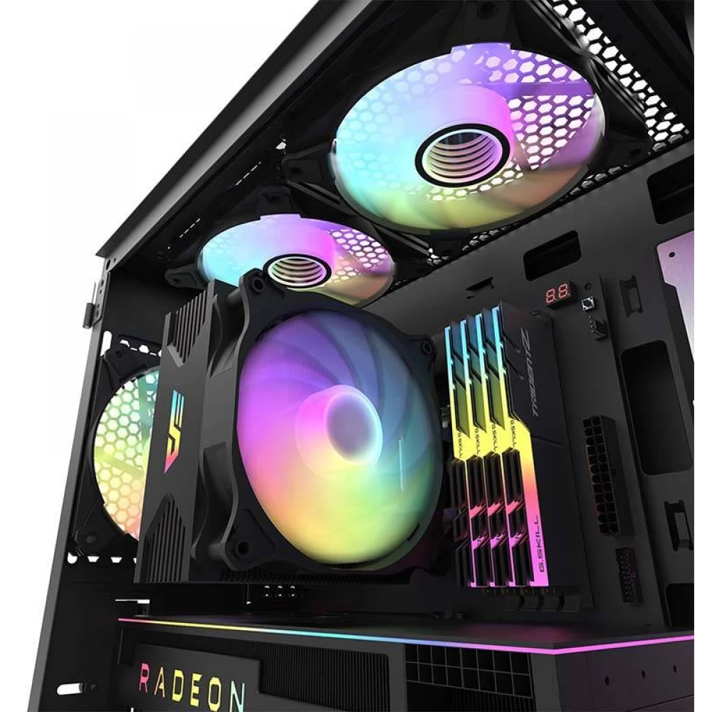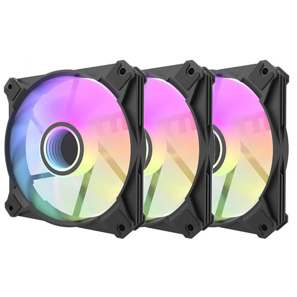 3 120mm case cooling fans with special controllable ARGB lighting and PWM control. The kit also includes an external control unit.