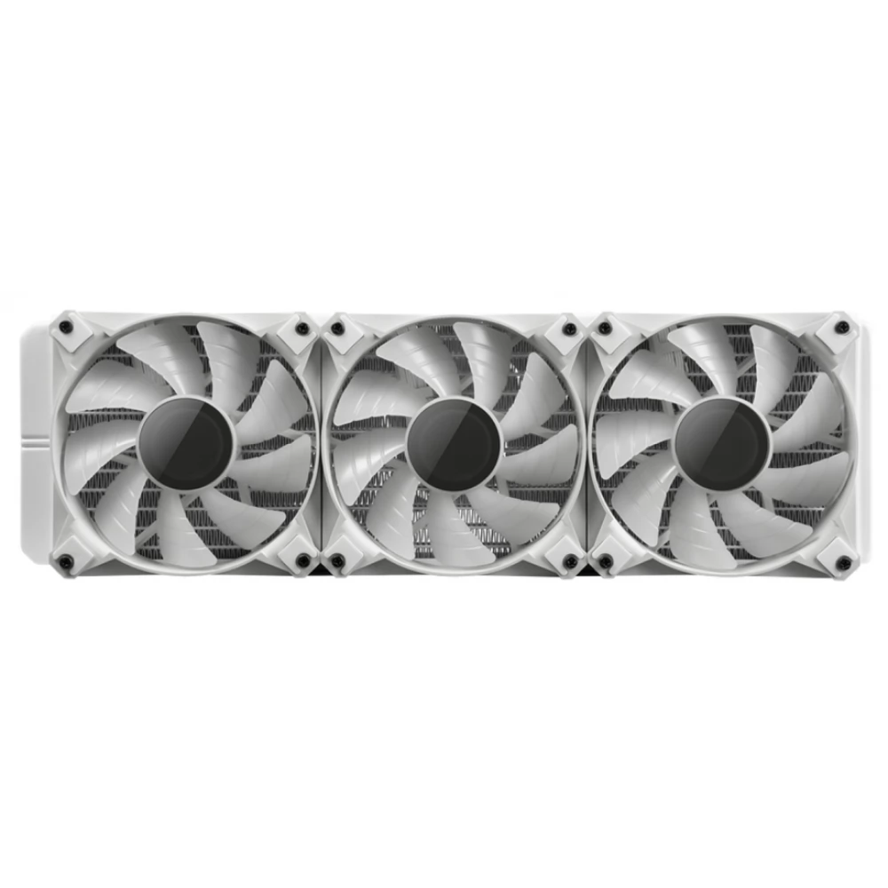 Compact, universal water cooling with 3 120mm fans and controllable ARGB lighting.