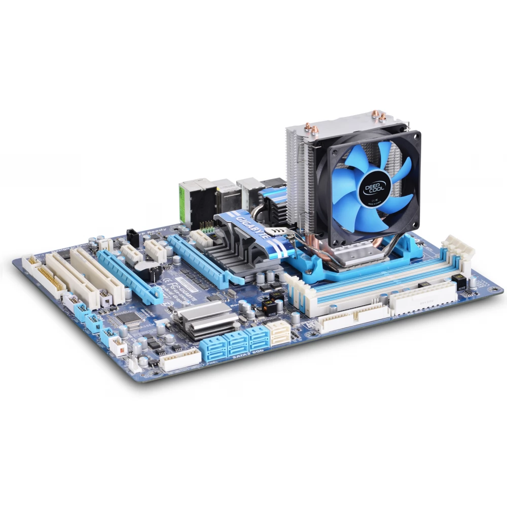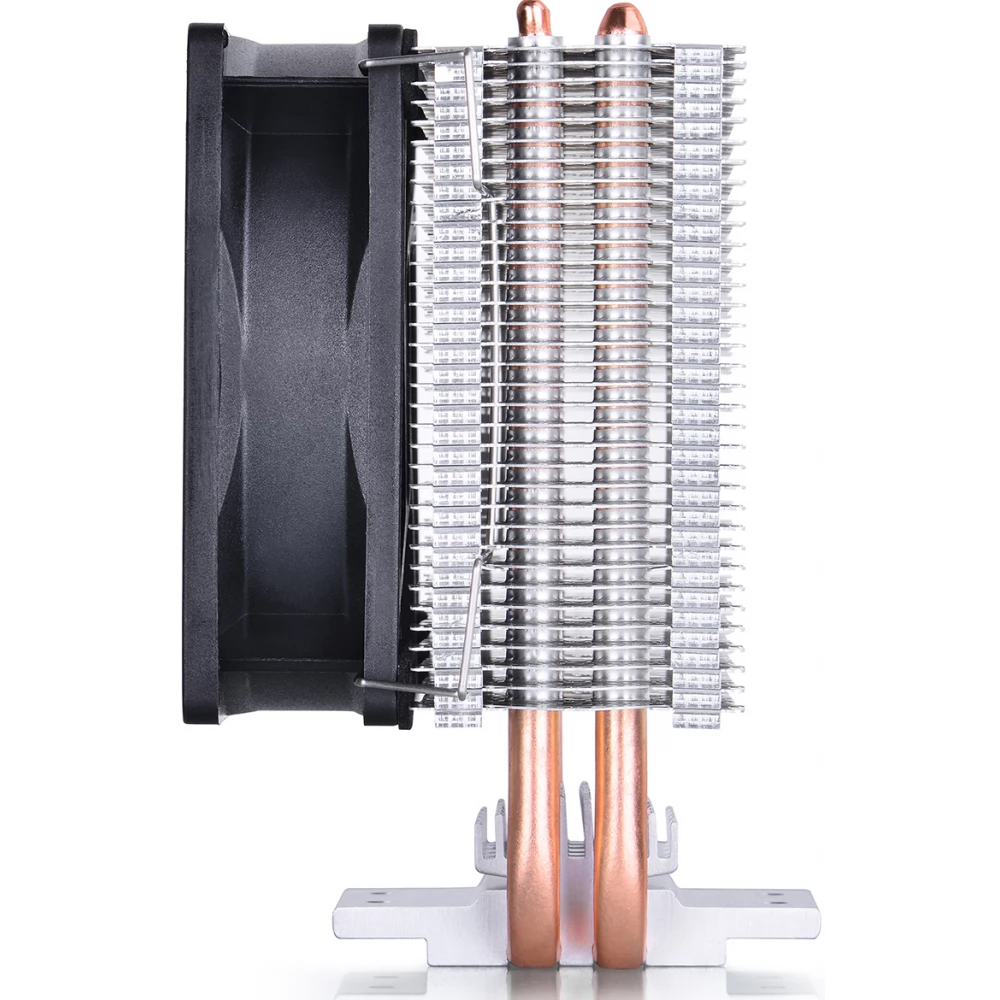 Mini-tower design, heat-conducting tube universal processor cooler with 80mm fan and 3-pin connector.