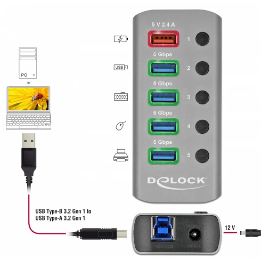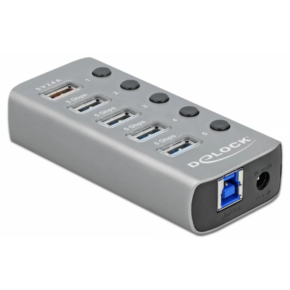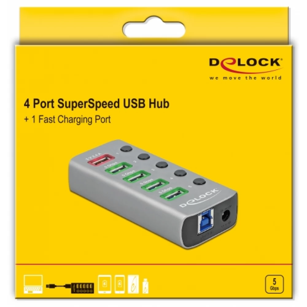 DELOCK 63262 USB 3.2 Gen 1 hub 4 ports as well as 1 fast charger ports switch and megvilágítással