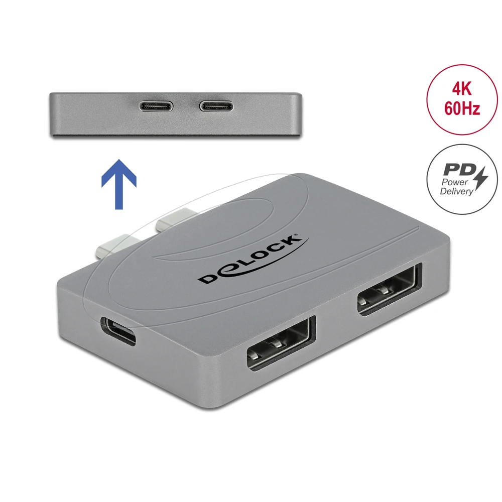DELOCK Dual DisplayPort adapter MacBook-hoz 4K 60 Hz and PD 3.0-s