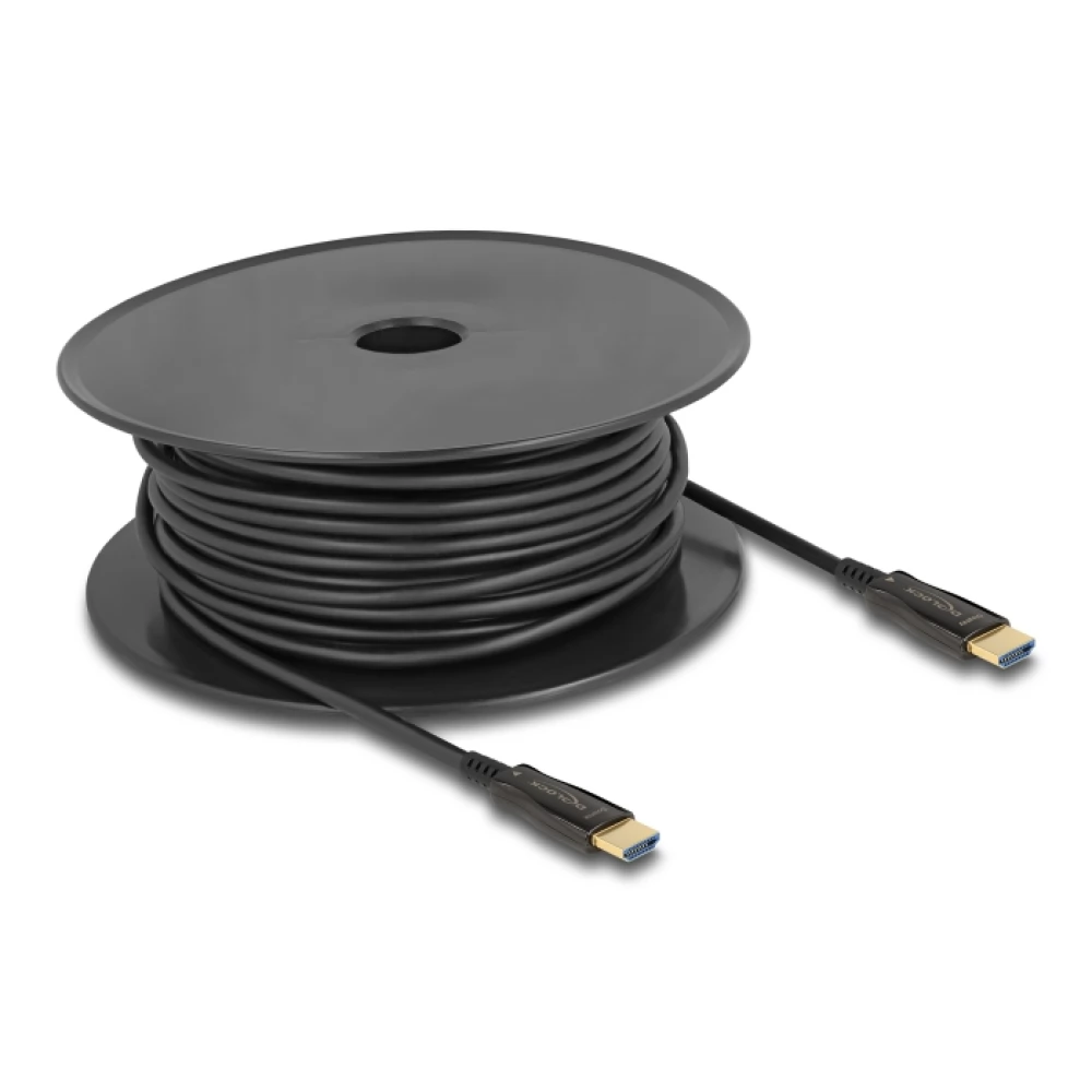 With this Delock cable, you can connect devices with an HDMI interface, such as monitors or TVs, to a personal computer or laptop. This active optical cable is particularly thin and can transmit signals over long distances without loss.