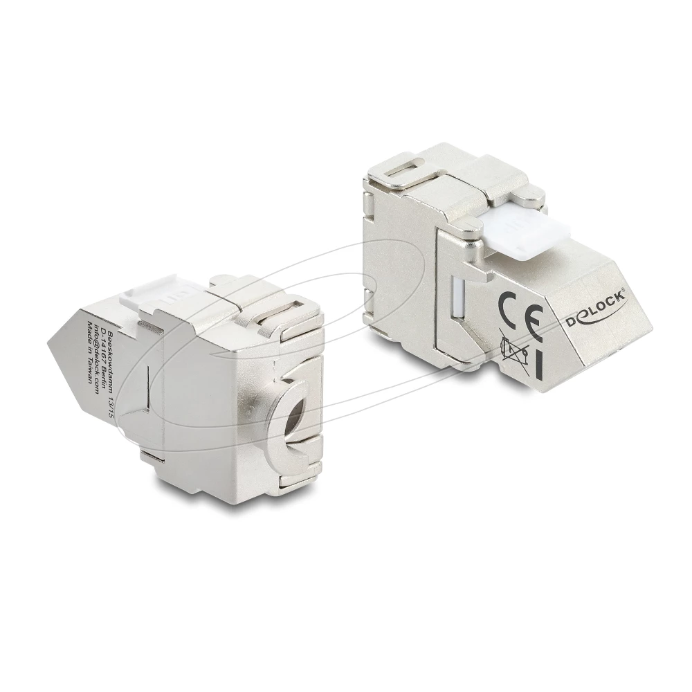 DELOCK Keystone modul RJ45 outlet LSA Cat.6A szabvány. 45 -ban slanted csatlakozó. árnyékolt. 180 -os kábelkivezetés. szerszámmentes. metal housing export