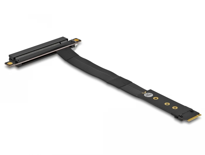 This Delock Adapter can be used to connect a PCI Express card and an M.2 connector. The flexible cable allows space -saving fastening in the computer house. An additional power connector can feed the PCIE card with a voltage of 12 V if necessary.