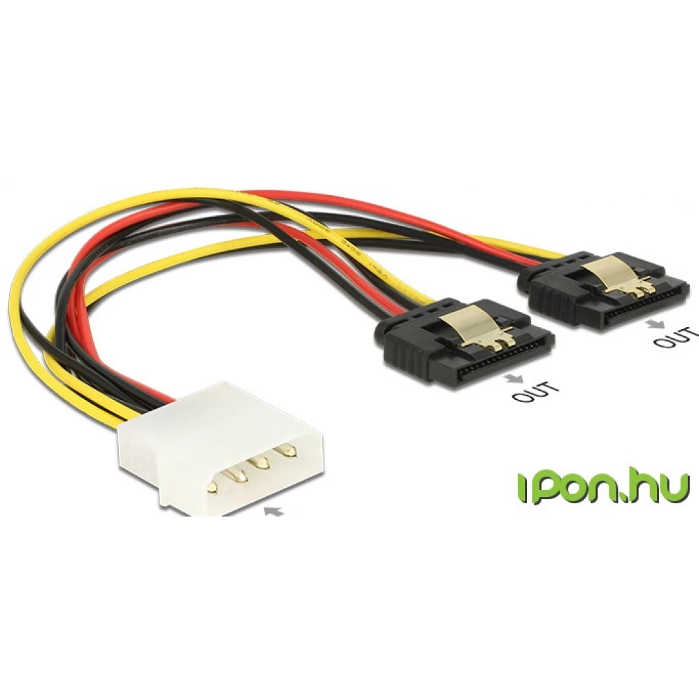 This Delock cable allows you to supply two devices with a 15-pin SATA socket via a free 4-pin Molex connector on the power supply. Thanks to the metal clips on the SATA sockets, the cable can be firmly fixed in place.
