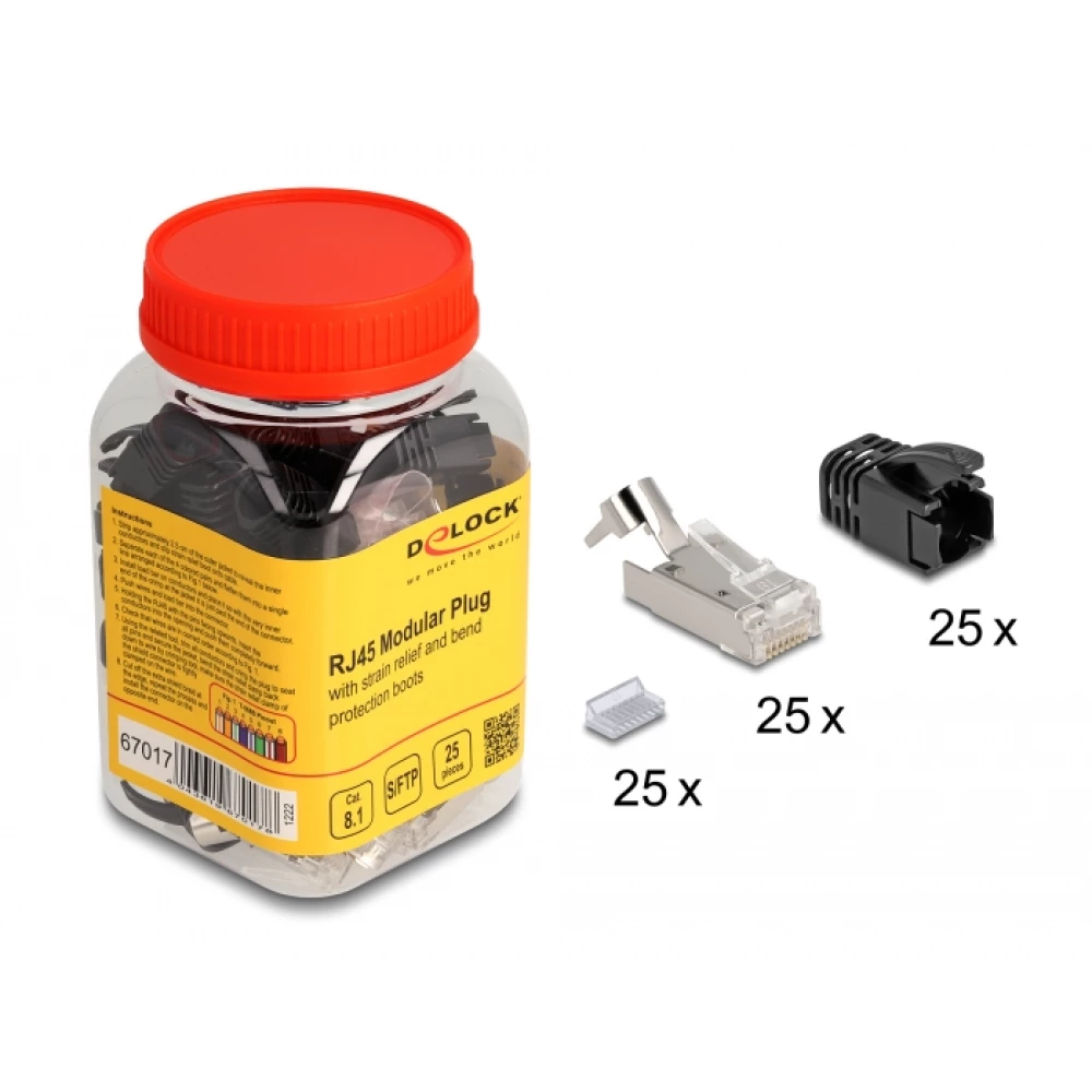 DELOCK RJ45 Modular plug tension mentesítővel Cat.8.1 and hajlítás protector papucsokkal 25 pcs set