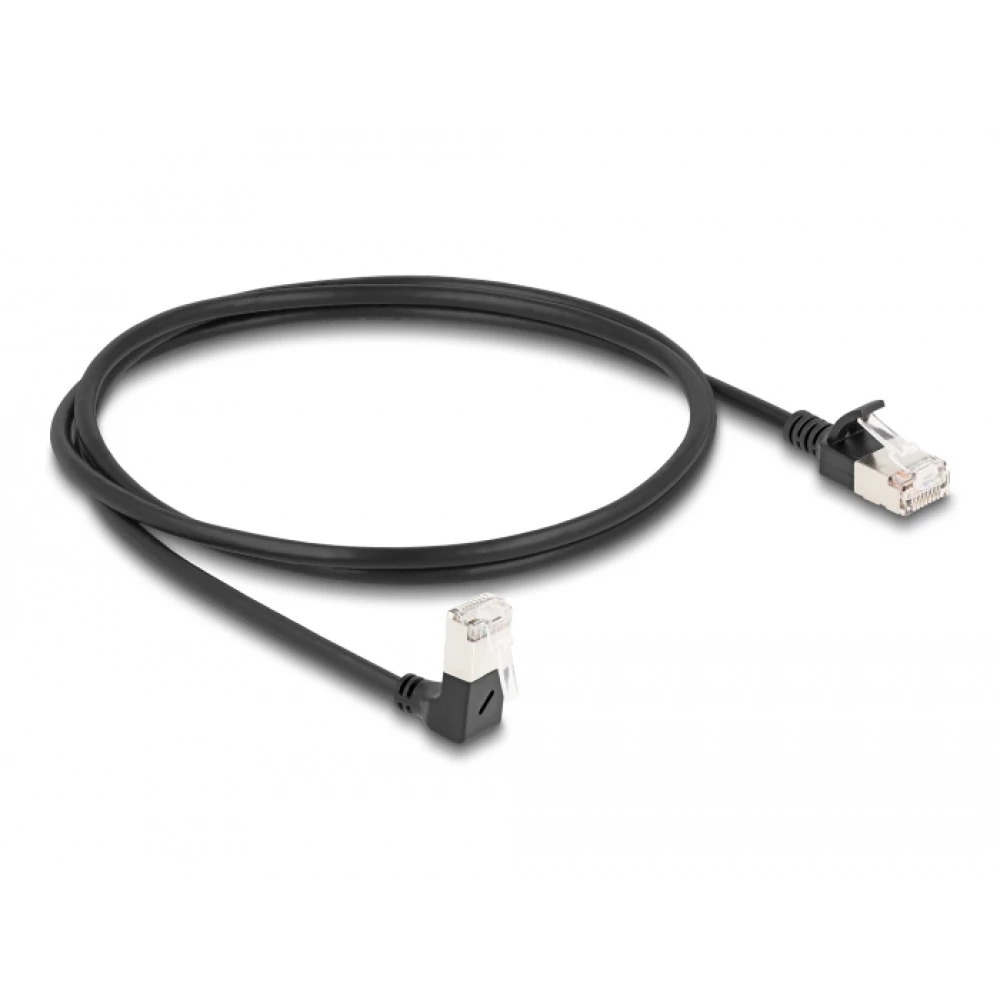 DELOCK RJ45 network cable Cat.6A S/FTP slim 90 degrees lefelé hajló / straight 1 m black